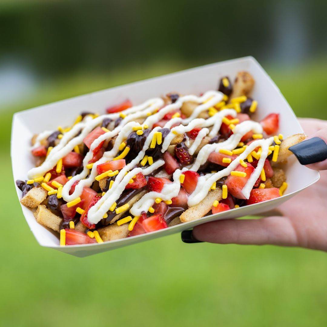 - Strawberry Chocolate Fries – Cinnamon-sugar dusted french fries topped with chocolate ganache, strawberries, and honey cream cheese (above)