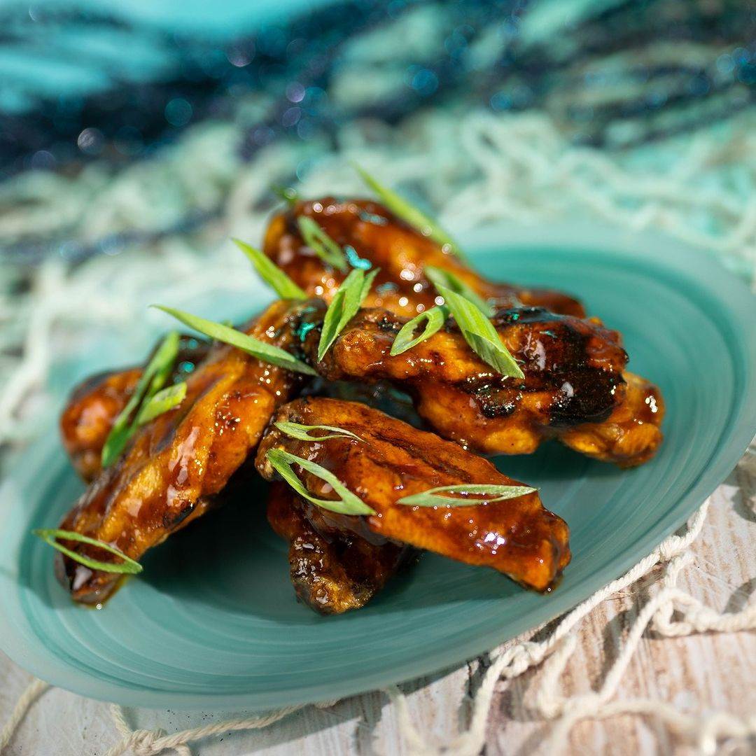 - Grilled Chicken Wings with Jamaican-spiced rum glaze and green onions