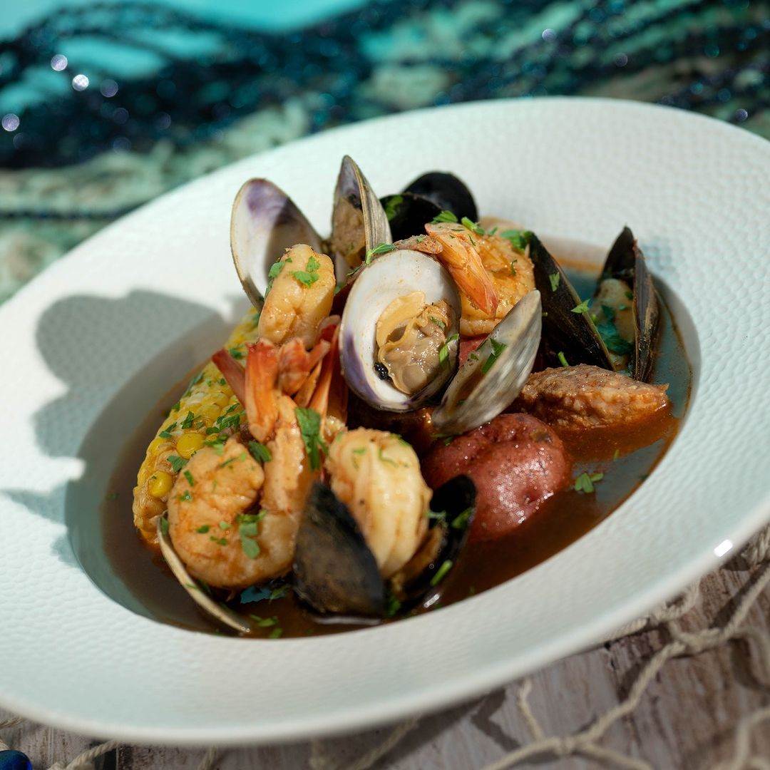 - Seafood Boil: Shrimp, mussels, clams, andouille sausage, sweet corn, and potatoes