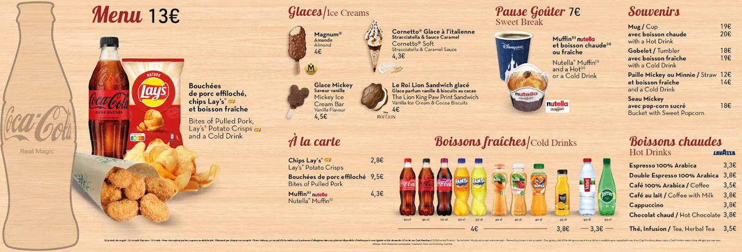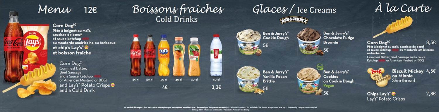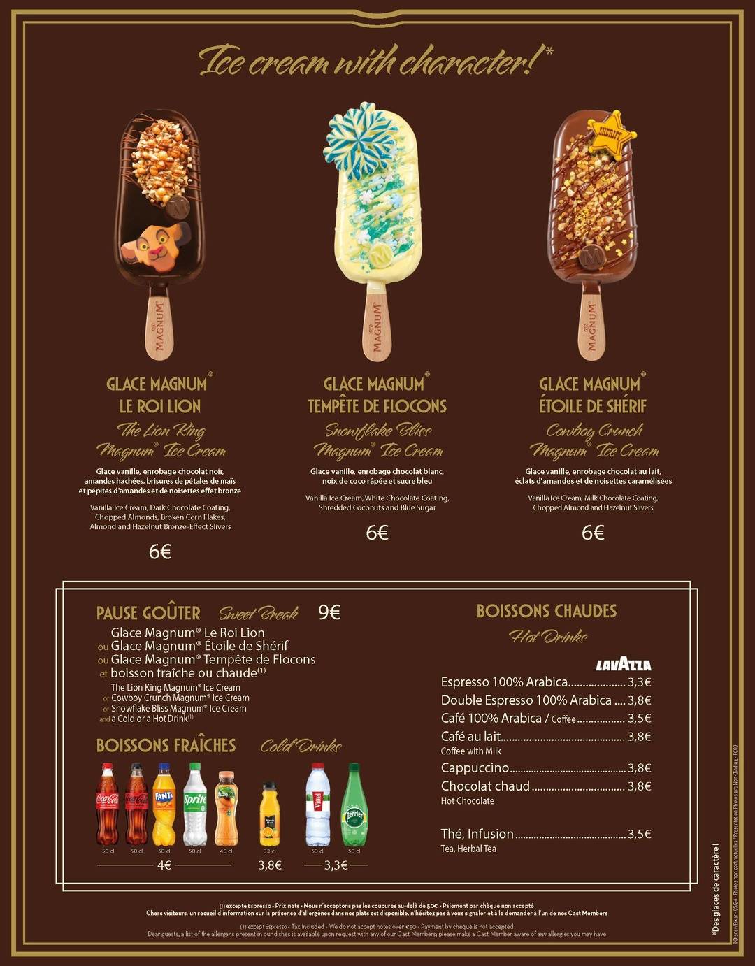 - Also, you will find the new menus for the kiosks, Cool Post, L'Arbre Enchanté, and Ice Cream Creations, starting today.