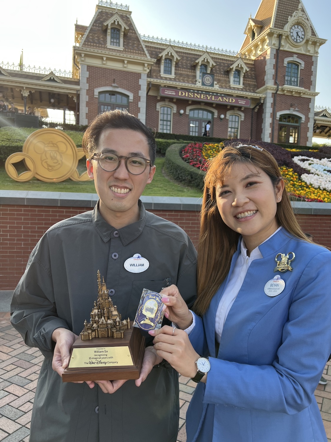 - William So, a Guest Service Manager at Hong Kong Disneyland Resort: “I transferred from Hotel Operations to Park Operations during the castle transformation. Receiving this brand-new service award featuring the Castle of Magical Dreams holds special meaning for me, as it connects to my experience witnessing the launch of this significant milestone. I truly value the friendships and partnerships I’ve built with various teams throughout my Disney journey. And I’m proud to be part of many important moments, including the opening of Disney Explorers Lodge and the launch of the ‘Momentous’ Nighttime Spectacular,"