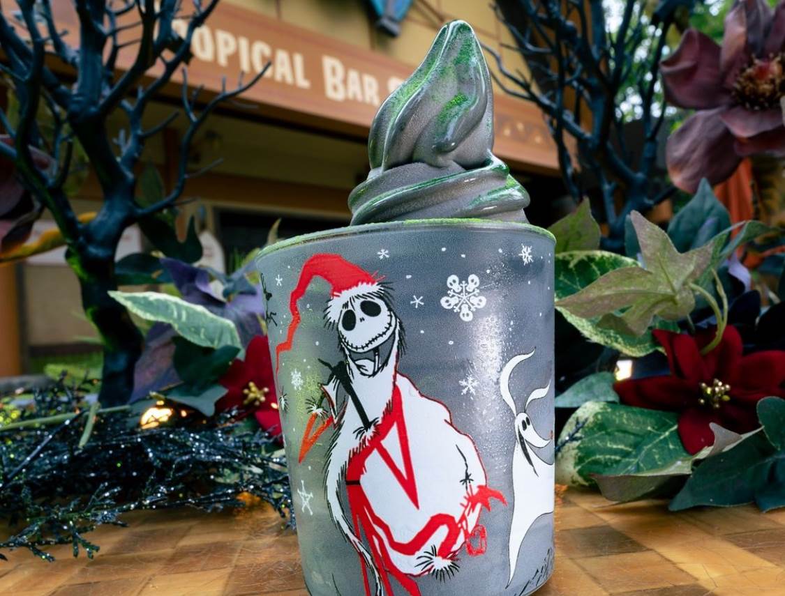 - For a souvenir cup, it’s awfully fun featuring a sculpted swirl alongside imagery of Jack Skellington as Santa Claus as depicted in the film. However, some fans of Trader Sam’s and their lengthy history of elaborate and highly detailed souvenir glassware might be a bit disappointed with its simplicity.