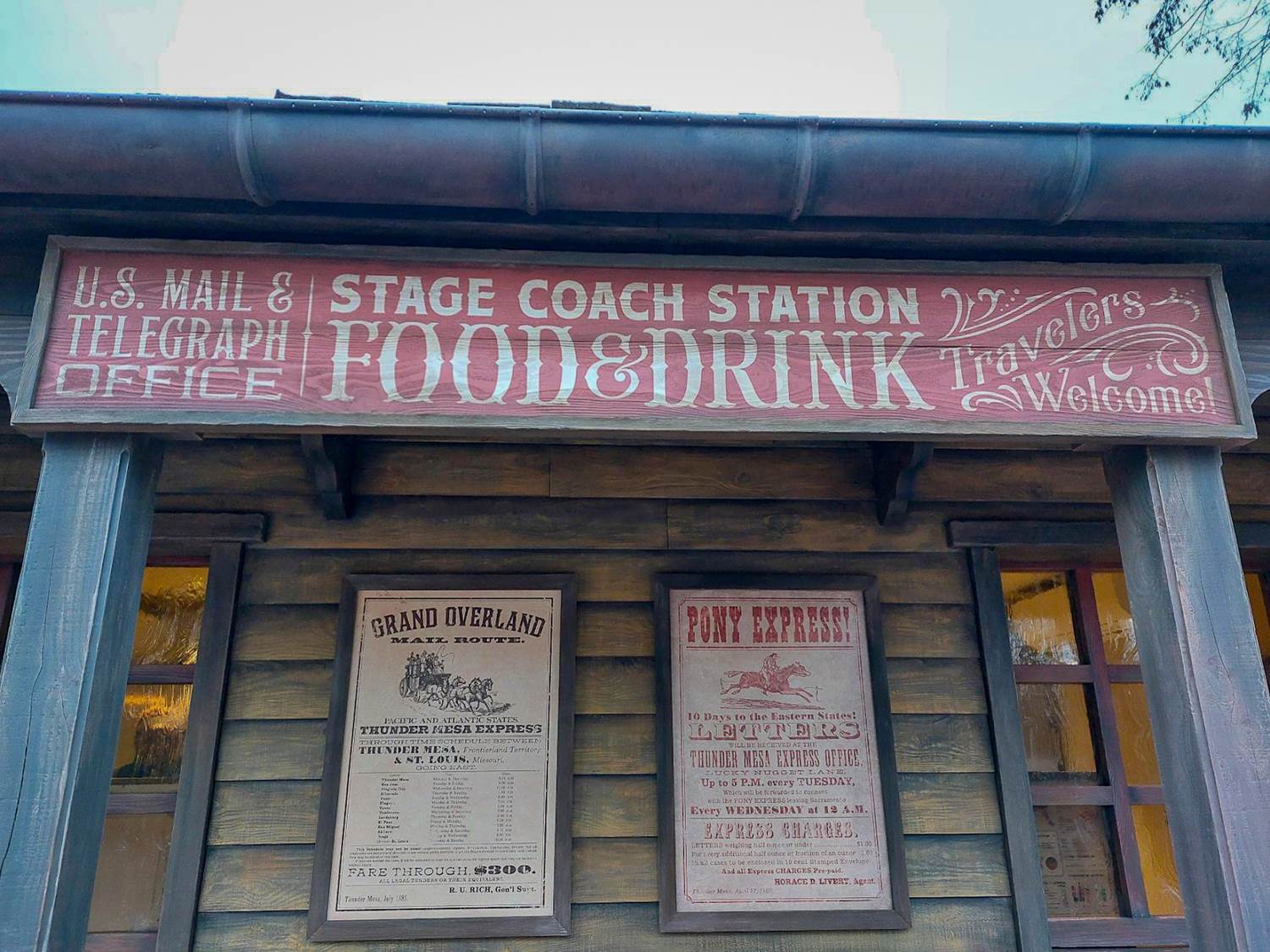 - The Overland Trail Café is a takeaway for travelers on their way west, whether by stagecoach or wagon! It also served as a mail relay for the famous Pony Express postal service of the time. Its name, Overland Trail, alludes to one of the main routes linking the East and West of the United States, used by the Pony Express, stagecoaches (Overland Mail) and gold seekers on their way to California.
