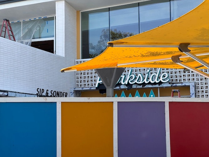 Exterior work on the new Parkside Market coming to Downtown Disney is really starting to come along, with new signage installed as the opening seemingly draws near.