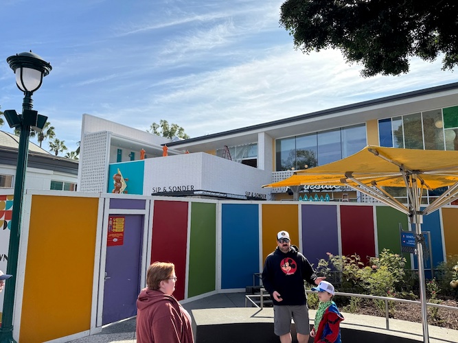 The new building continues the mid-century design approach given to much of the new expansion of Downtown Disney, such as the recently opened D-Lander Shop.