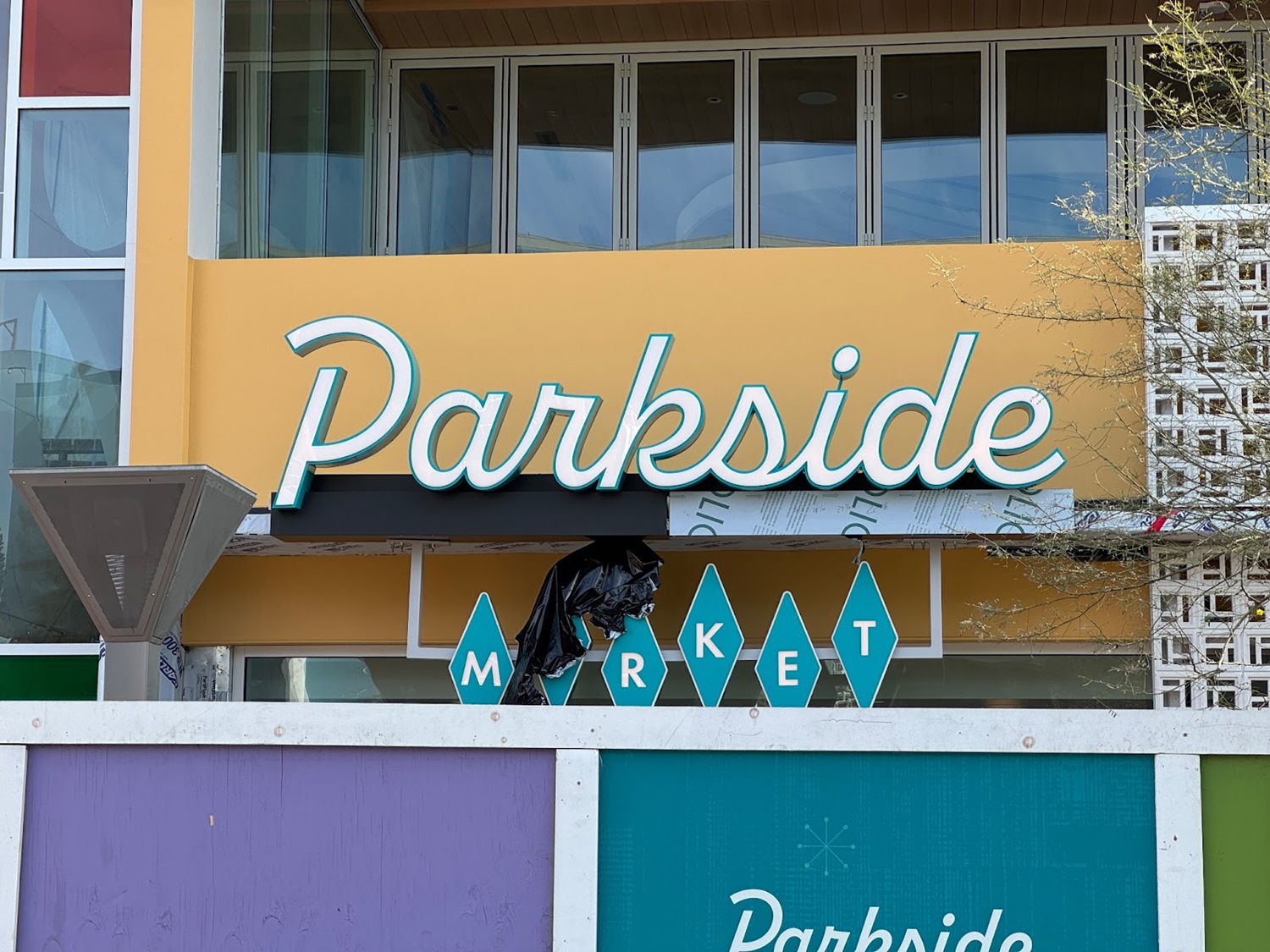 Exterior work on the new Parkside Market coming to Downtown Disney is really starting to come along, with new signage installed as the opening seemingly draws near.
