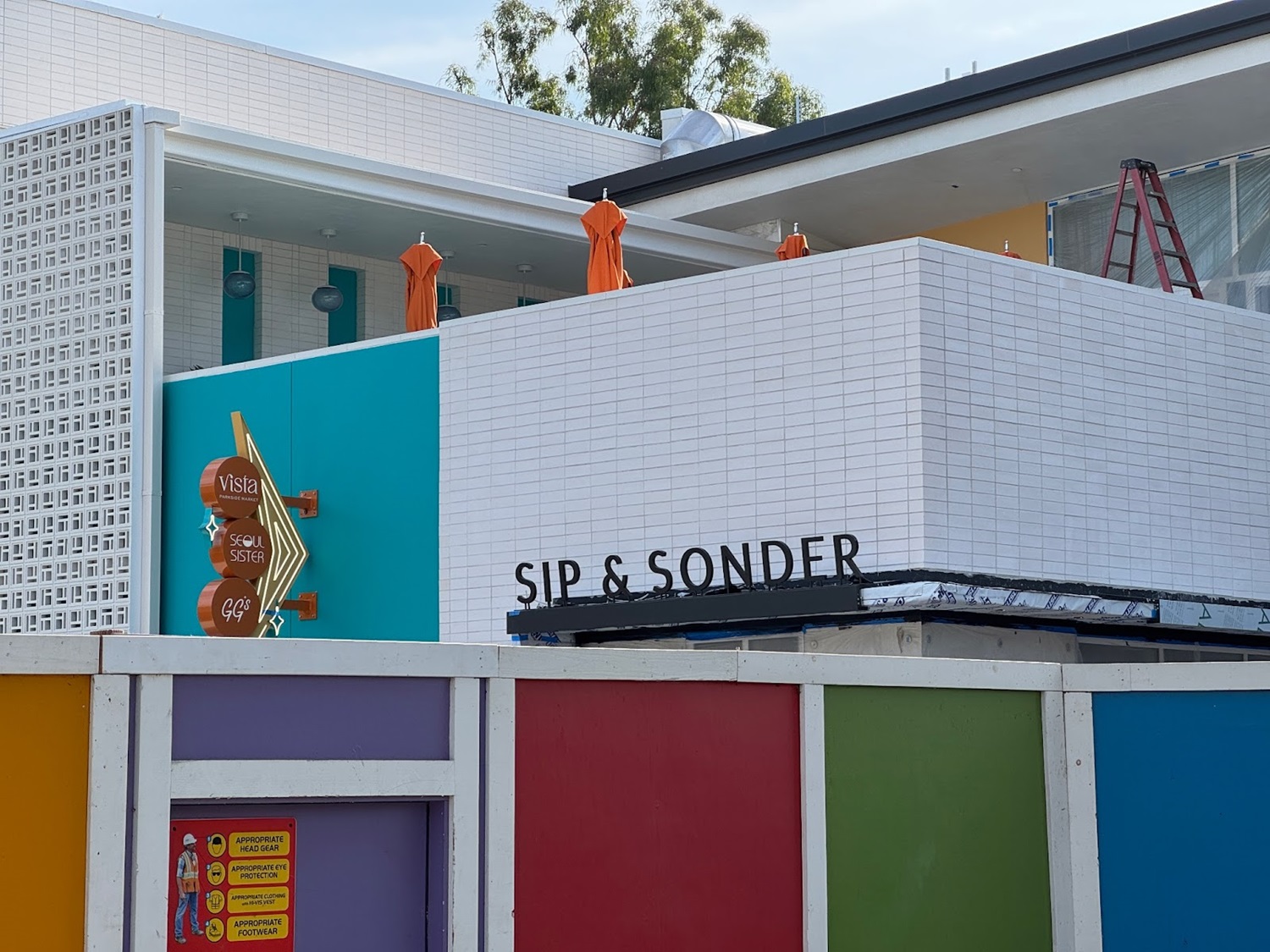 Sip & Sonder has its own entrance right outside the main entrance to the Parkside Market, with its signage also installed.
