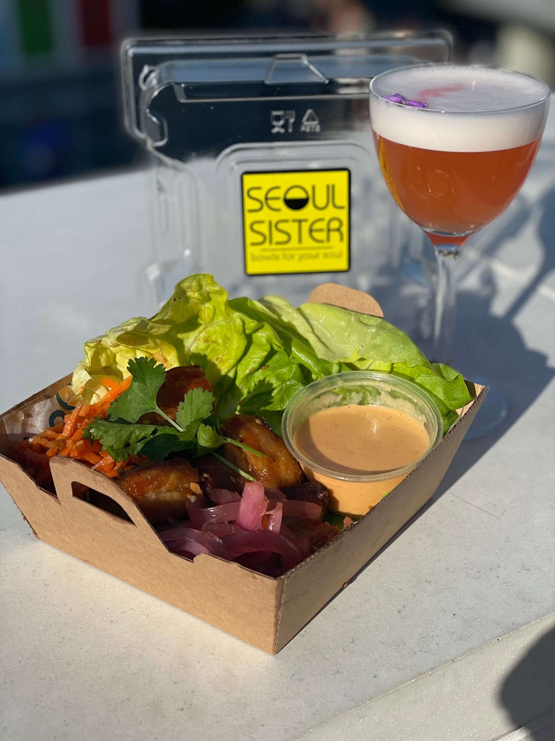 Available at Seoul Sisters, this meal allows you to build your own pork belly lettuce wraps, which comes with sauce, pickled onions, and other toppings.