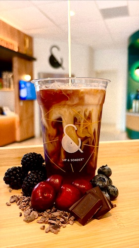 Experience a delicious cold brew coffee blend that combines notes of rich red wine and chocolate enhanced with delicious berry syrups. This delicious beverage is available at Sip & Sonder.
