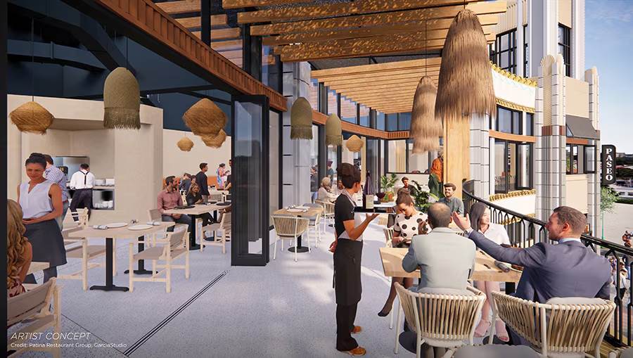 - As the Parks Blog notes, a stunning staircase will lead you to Paseo’s dining room and bar area lined with rich woods, tiles, textures, and leathers as well as custom accents that celebrate Mexico’s craftsmanship culture.