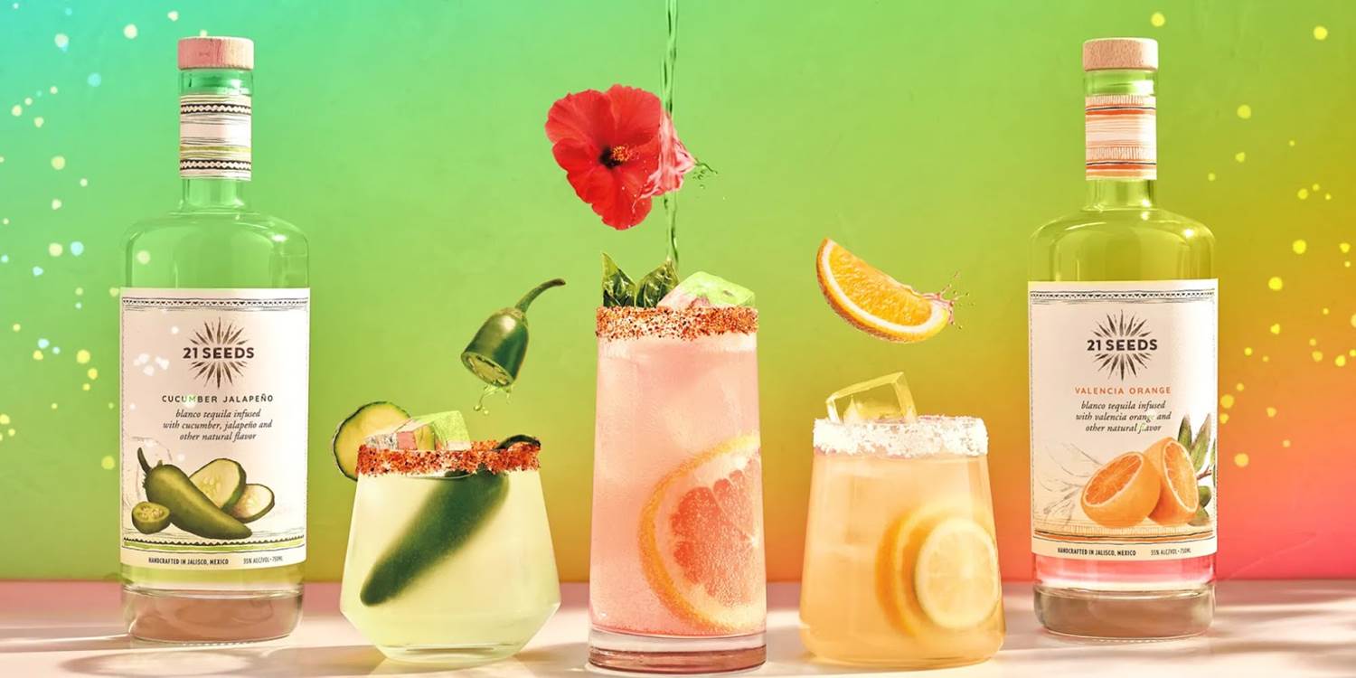 - All four were expertly crafted with 21Seeds tequila, made with real fruit. The colorful drinks include a Spicy Ms. Margarita with cucumber jalapeno-infused tequila, and the Proud Paloma with grapefruit hibiscus-infused tequila.