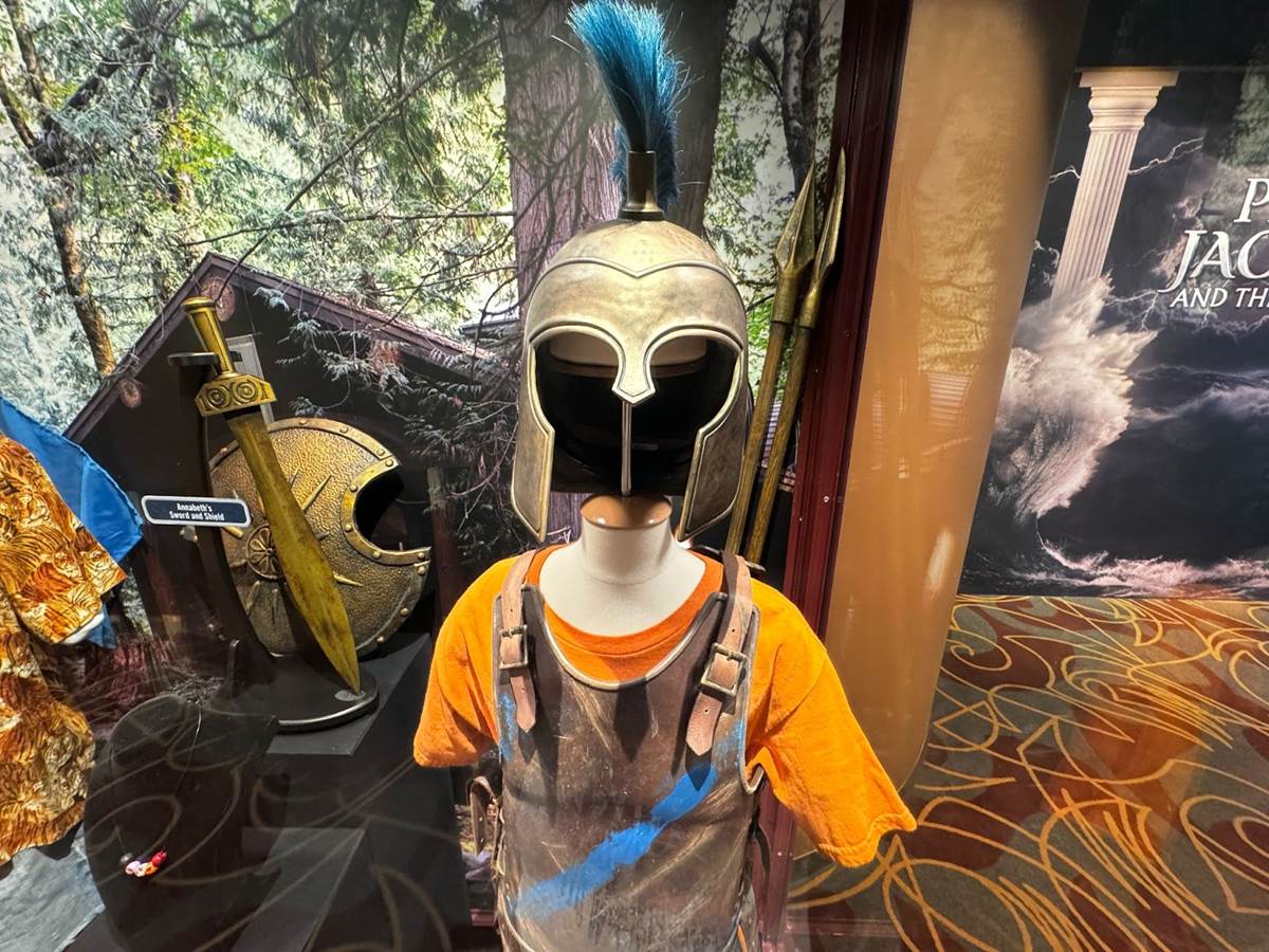This display case includes A full Camp Half-Blood warrior costume, as seen in Episode 2 (“I Become Supreme Lord of the Bathroom").