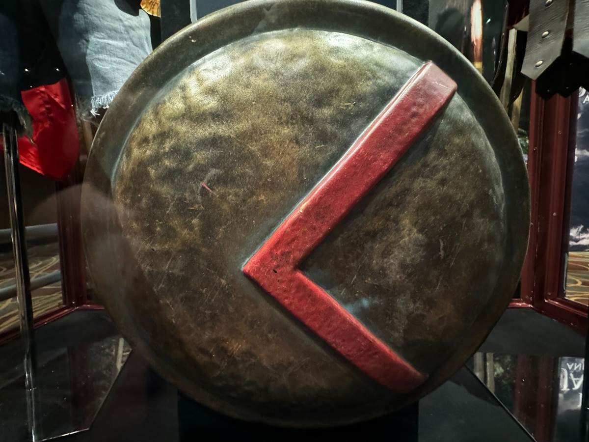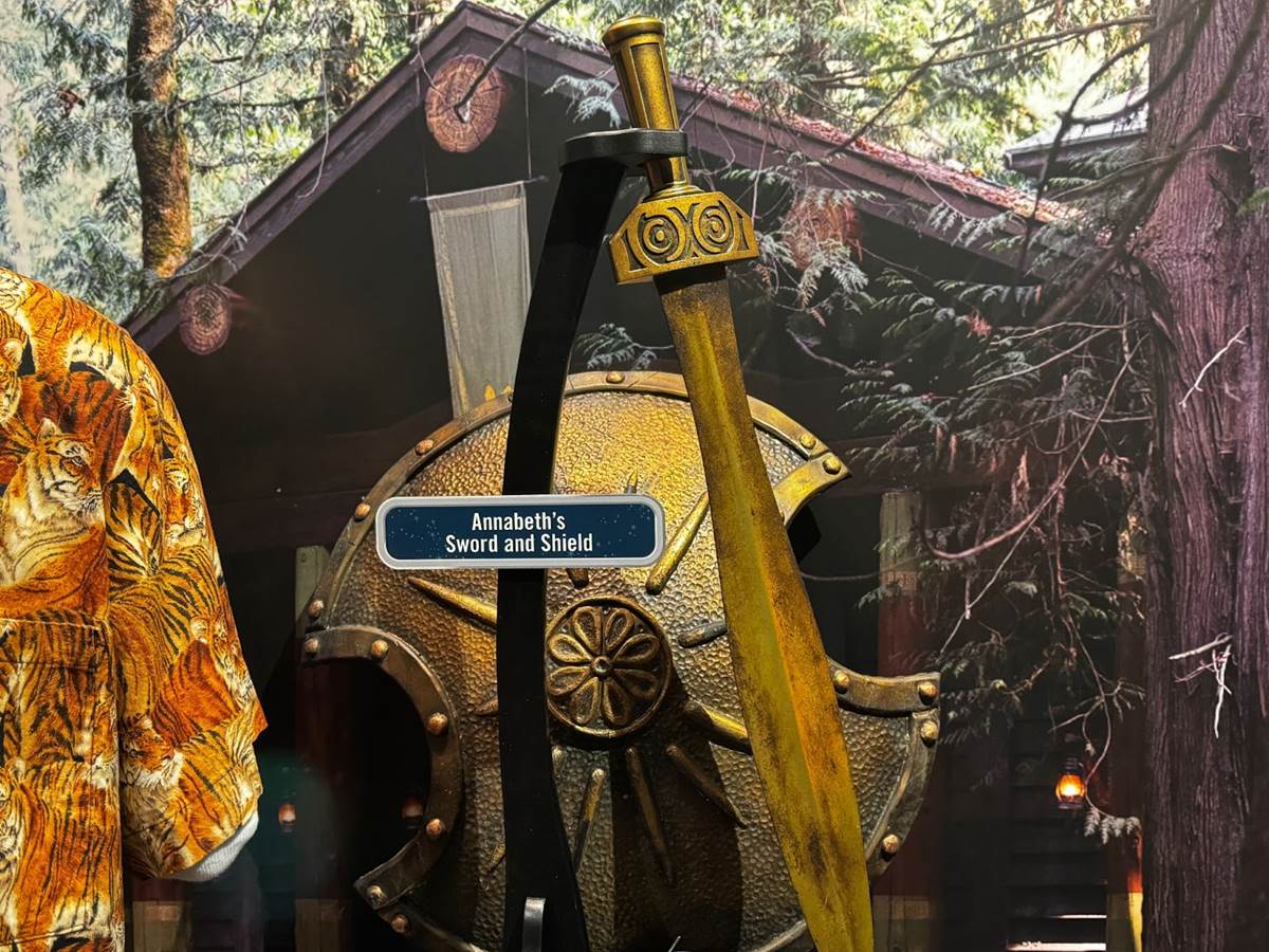 Annabeth’s sword and shield from this same episode are also in this case, as is a Camp Half-Blood necklace.