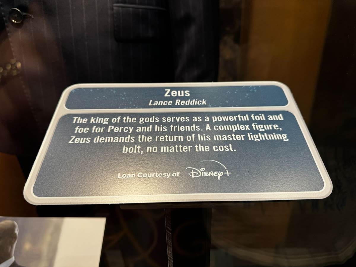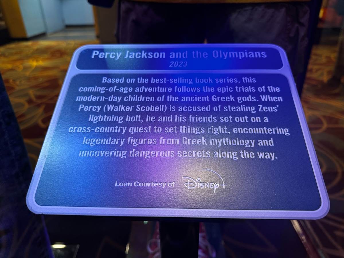 A plaque in this display case introduces the show’s premise to Guests: “Based on the best-selling book series, this coming-of-age adventure follows the epic trials of the modern-day children of the ancient Greek gods. When Percy (Walker Scobell) is accused of stealing Zeus' lightning bolt, he and his friends set out on a cross-country quest to set things right, encountering legendary figures from Greek mythology and uncovering dangerous secrets along the way."