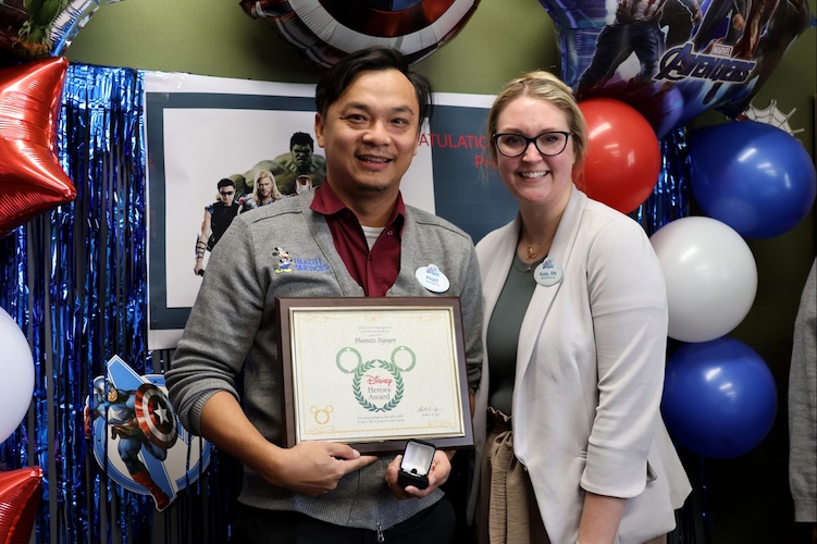 - Presenting Nguyen with the Disney Heroes Award, the Health Services team surprised the honoree with a Marvel themed party.