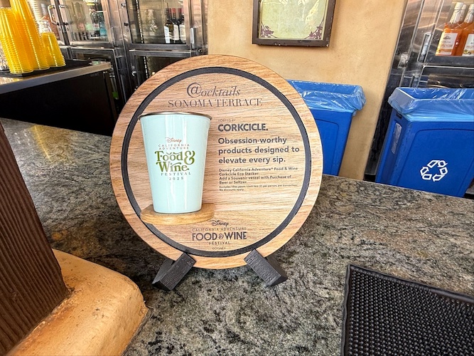- Disney California Adventure Food & Wine CORKCICLE Eco Stacker: Add a souvenir vessel with purchase of beer or seltzer. Excludes 10oz pours. Limit two (2) per person, per transaction. No discounts apply. While supplies last.