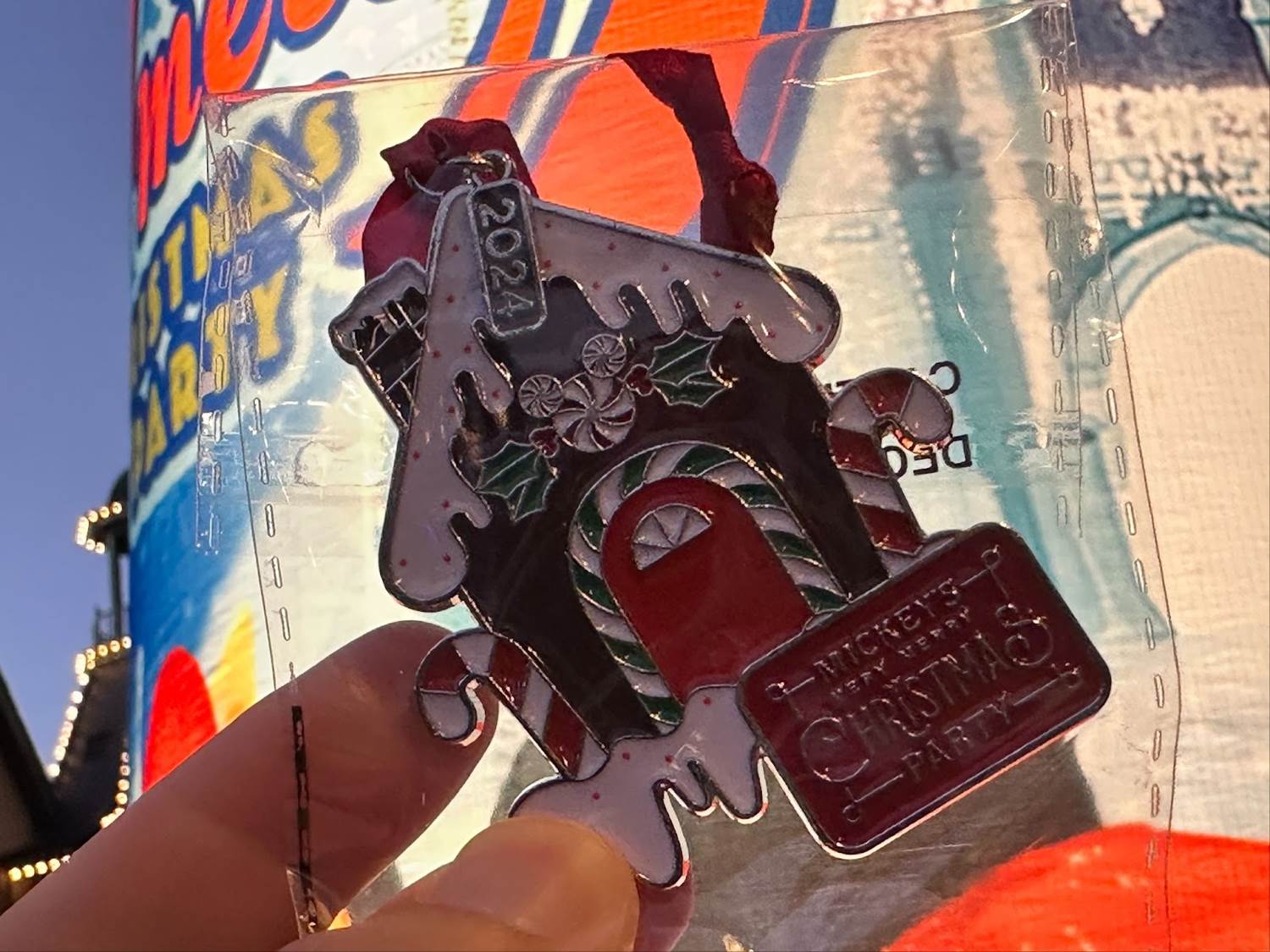 At the end of the passthrough, guests will receive their complimentary commemorative Mickey’s Very Merry Christmas Party 2024 pin ornament.