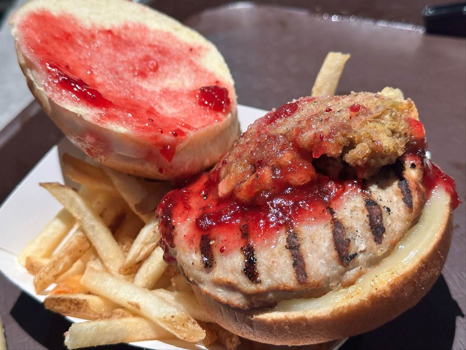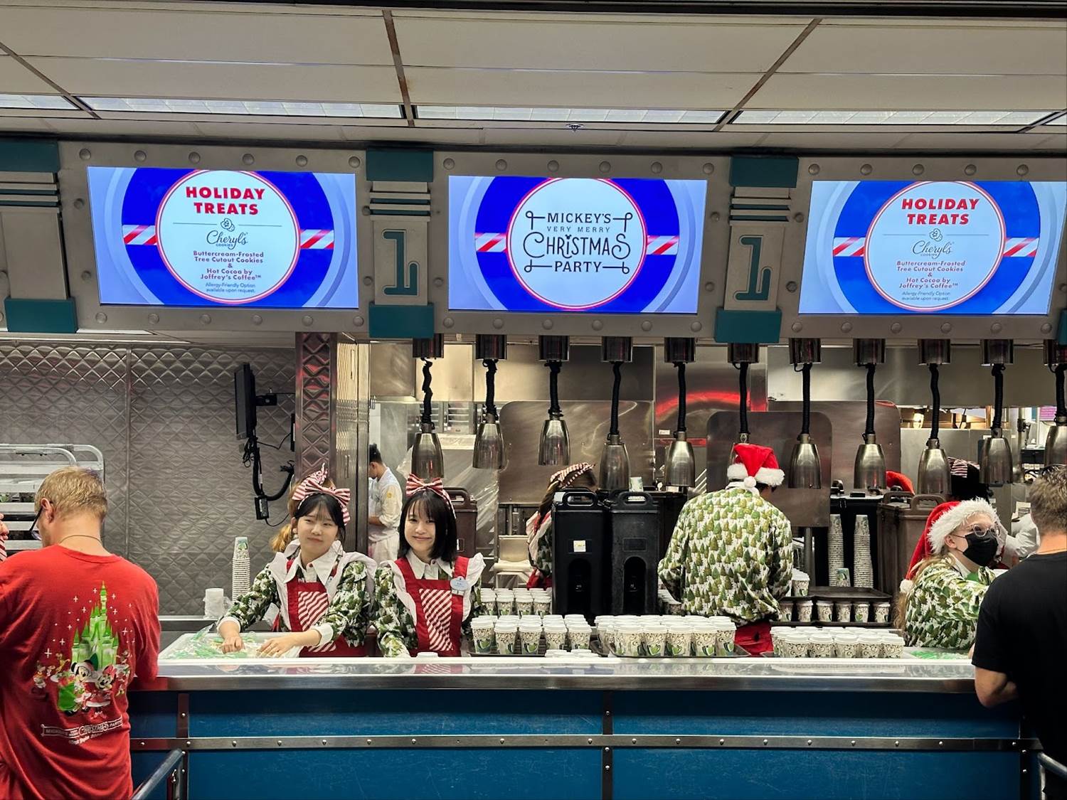 In addition to the free cookies and cocoa available throughout the event, guests can also pick up specialty food items like the Holiday Turkey Burger at Cosmic Ray’s Starlight Cafe. The turkey burger comes topped with traditional stuffing, provolone cheese and cranberry chutney on a brioche bun.