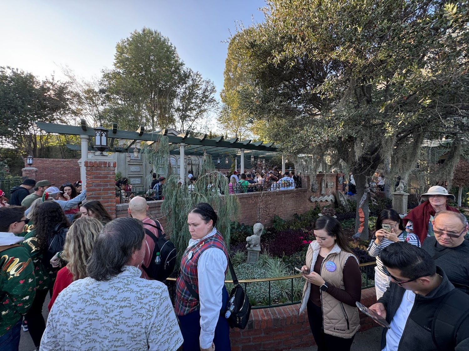 At the beginning of this year, Haunted Mansion closed for an extended refurbishment. While work was done on the inside of the attraction, the biggest changes were outside the foreboding French-Quarter Manor. Announced late last year, Disney completely transformed Haunted Mansion’s queue as well the plaza in front of the New Orleans Square’s train station. Prior to the transformation, nearly everyday, cast members would have to extend the Haunted Mansion’s queue outside the gates of the attraction and through the plaza. While the attraction reopened just in time for Disney’s Halloween festivities, the attraction had been using a virtual queue up until November 26th.