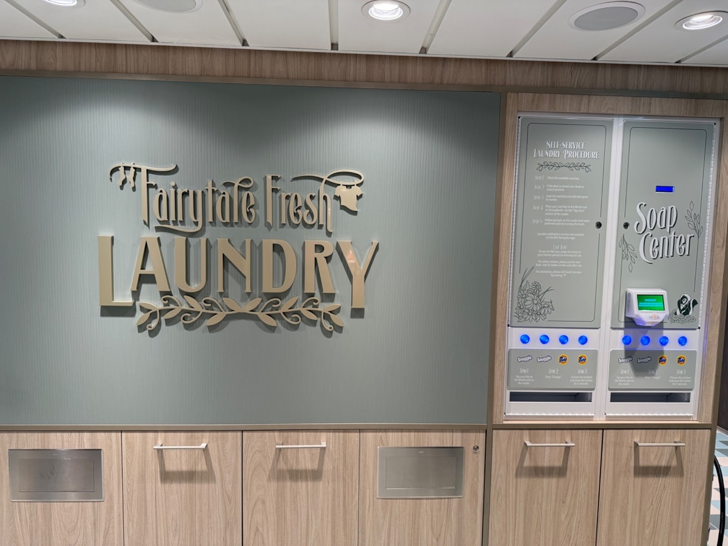 The Fairytale Fresh Laundry is available for all passengers to use, with your Key to the World or DisneyBand+ both usable to pay for the machines.