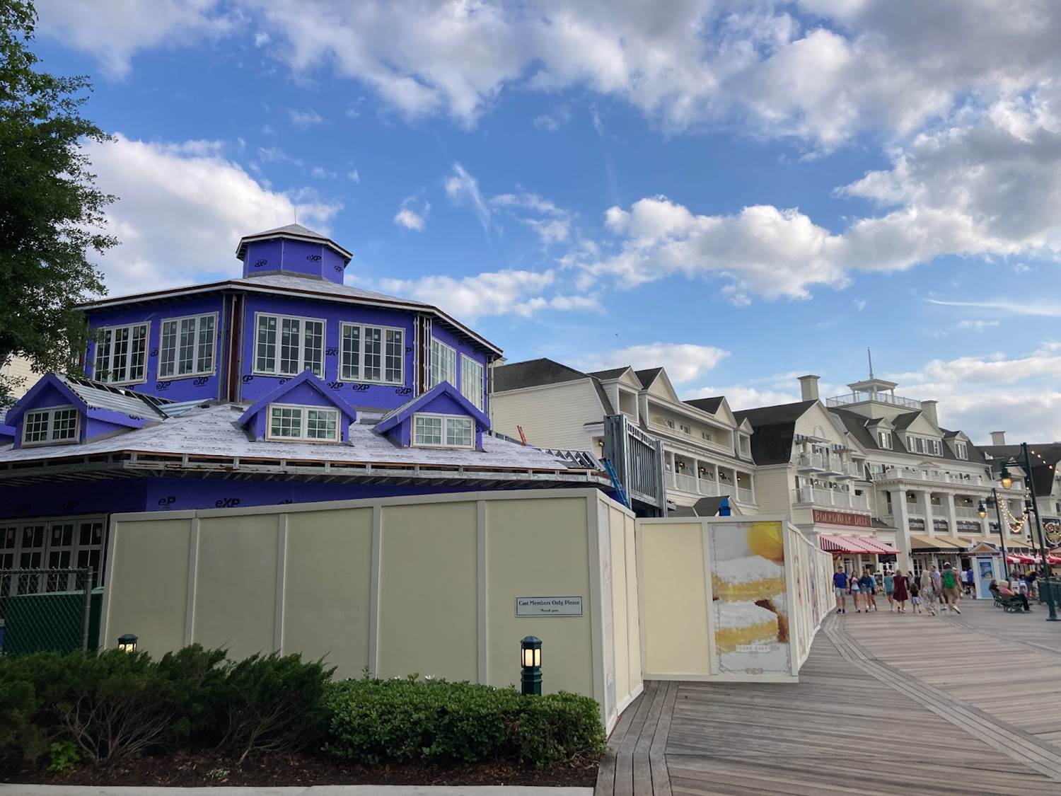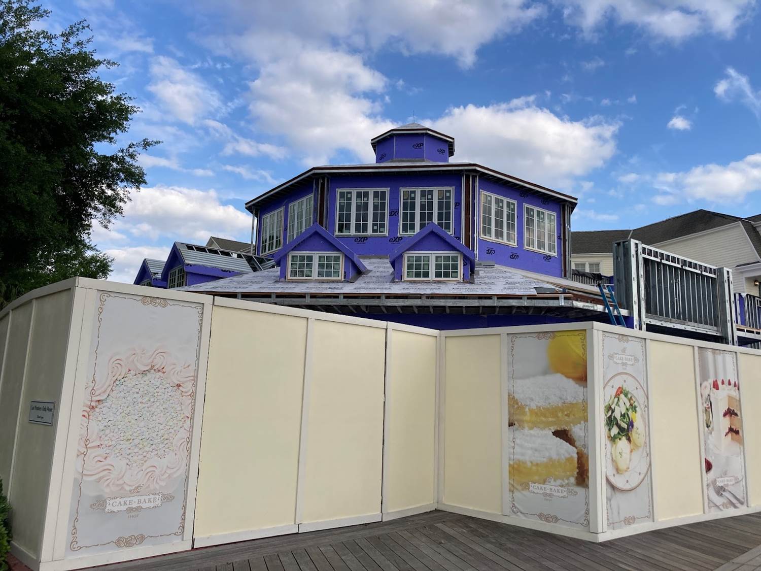 It’s been a while since we checked in on the seemingly forever under construction Cake Bake Shop coming to Disney’s BoardWalk. Today, we stopped by to take a look at the latest construction progress.