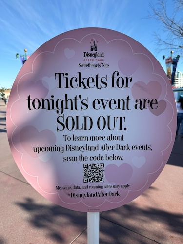 It’s time to celebrate the season of love at Disneyland! A part of the resort’s Disneyland After Dark event series, Sweethearts’ Nite invites guests into an evening celebrating romance, friendship, and the Valentine’s Day spirit. Upon arriving at the event, guests will notice signs announcing that Disneyland will be closed for the evening beginning at 8PM as well as a sign sharing that the event was sold out for the evening.