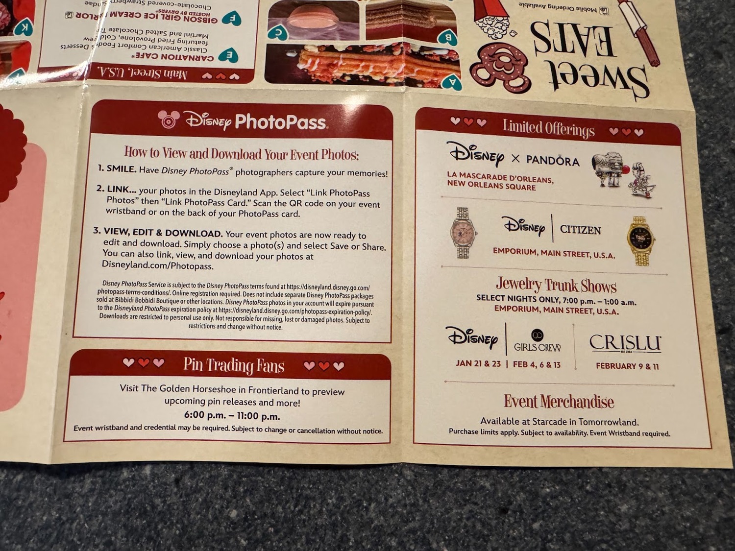 For those looking to pick up merchandise to commemorate their trip to Sweethearts’ Nite, head over to Starcade in Tomorrowland to explore a selection of exclusive merchandise celebrating the season of love. Event wristbands are required to enter the popup store.