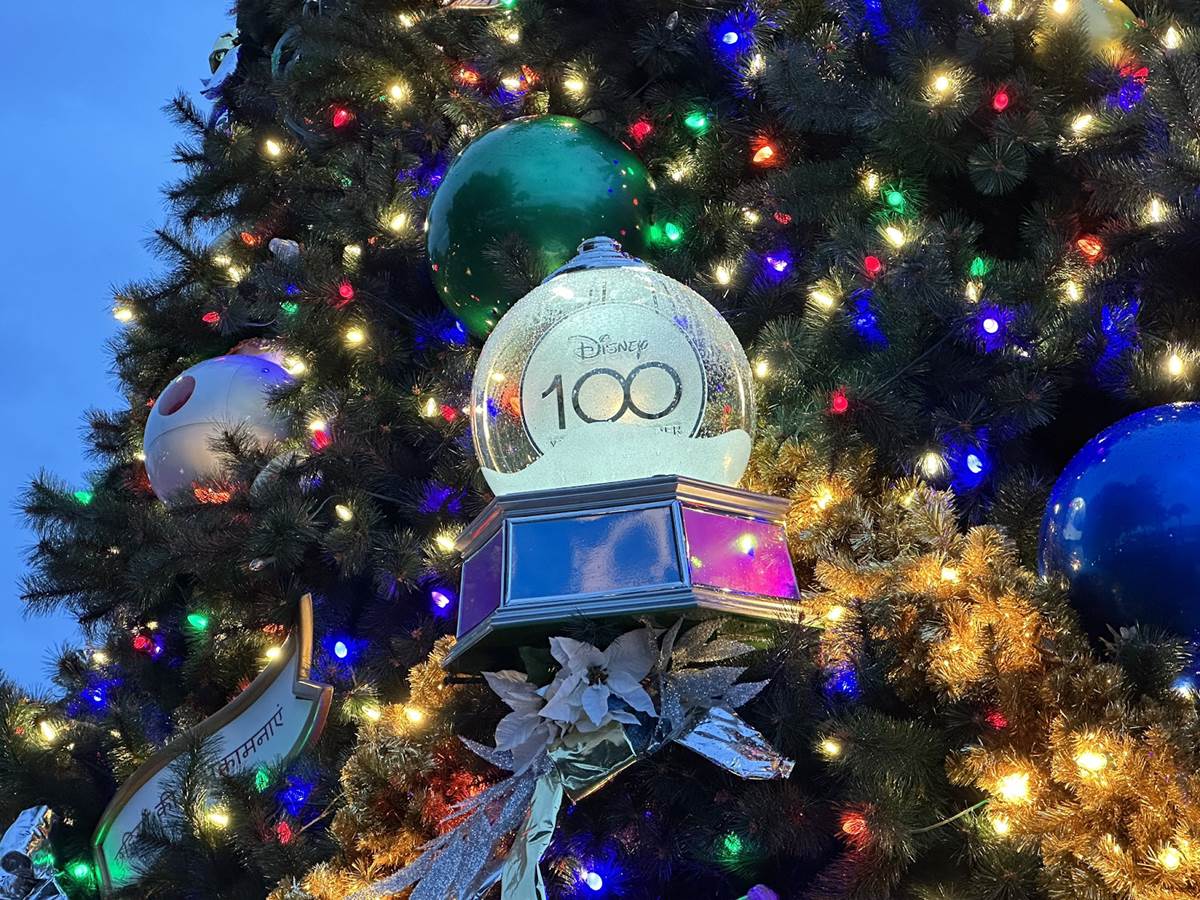 The EPCOT Christmas tree this year includes some fun Disney100 snow globe ornaments that we’re pretty surprised aren’t for sale!