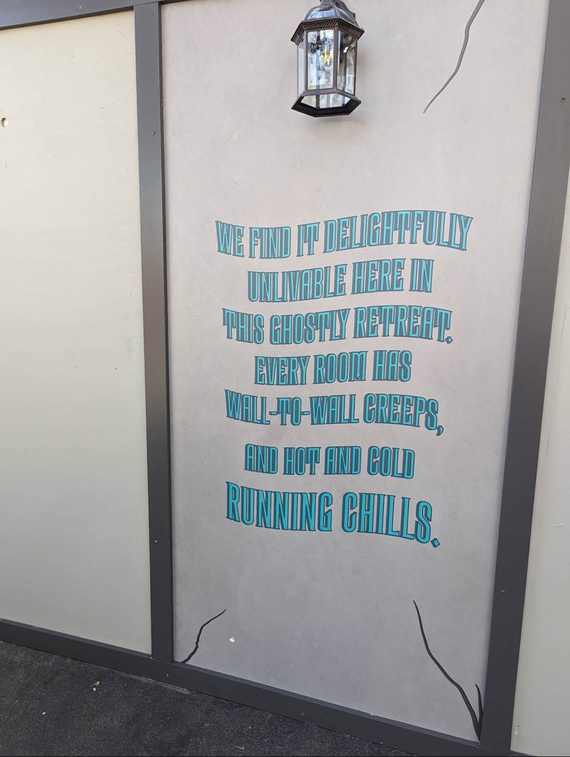 Various quotes from the Ghost Host can also be found along the construction walls, in addition to some of the tombstones from the queue.