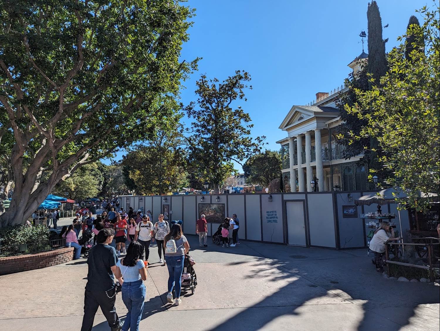 Construction walls are up around The Haunted Mansion at Disneyland as the attraction’s grounds begin to expand with a spirited metamorphosis. The attraction closed last week for a lengthy refurbishment that will see the story and lore expanded with a revamped outdoor queue to immerse guests in enhanced theming, as well as a new retail shop adjacent to the attraction’s exit.