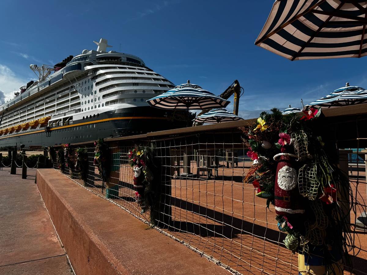 - Wreaths, garland and other cheerful decorations make for festive photo opportunities for guests visiting Disney’s Castaway Cay on a Disney Cruise.