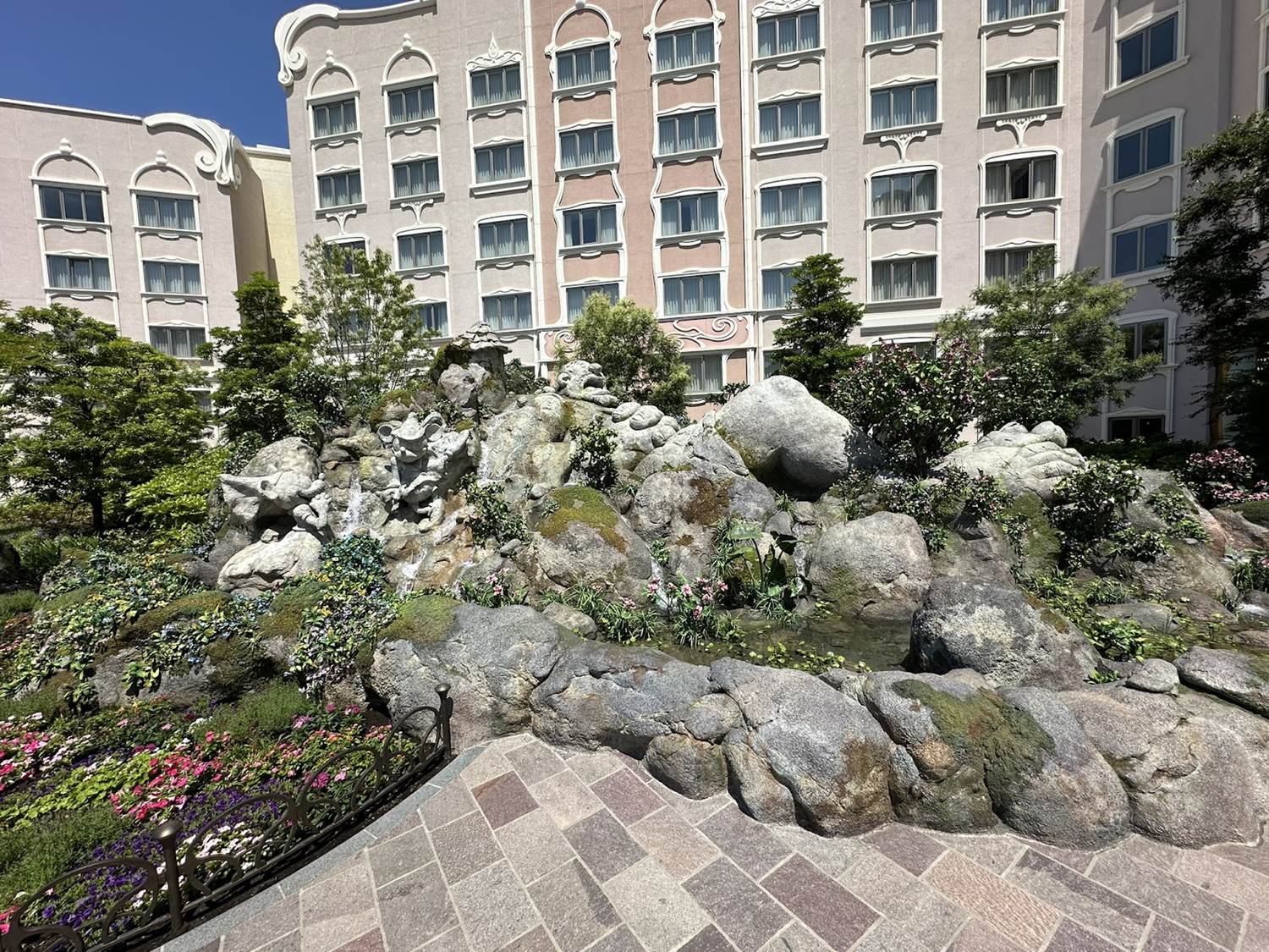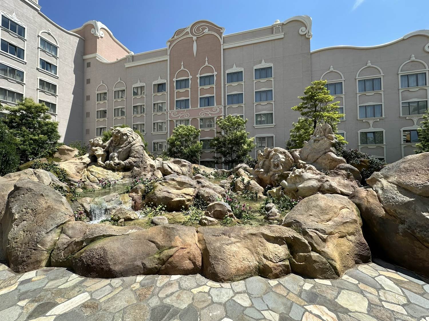 Just outside of the Lobby is the Rose Court. Consisting of a balcony and fountain area, it gave some gorgeous views of Fantasy Springs and access to the Beauty and the Beast themed rockwork fountain.