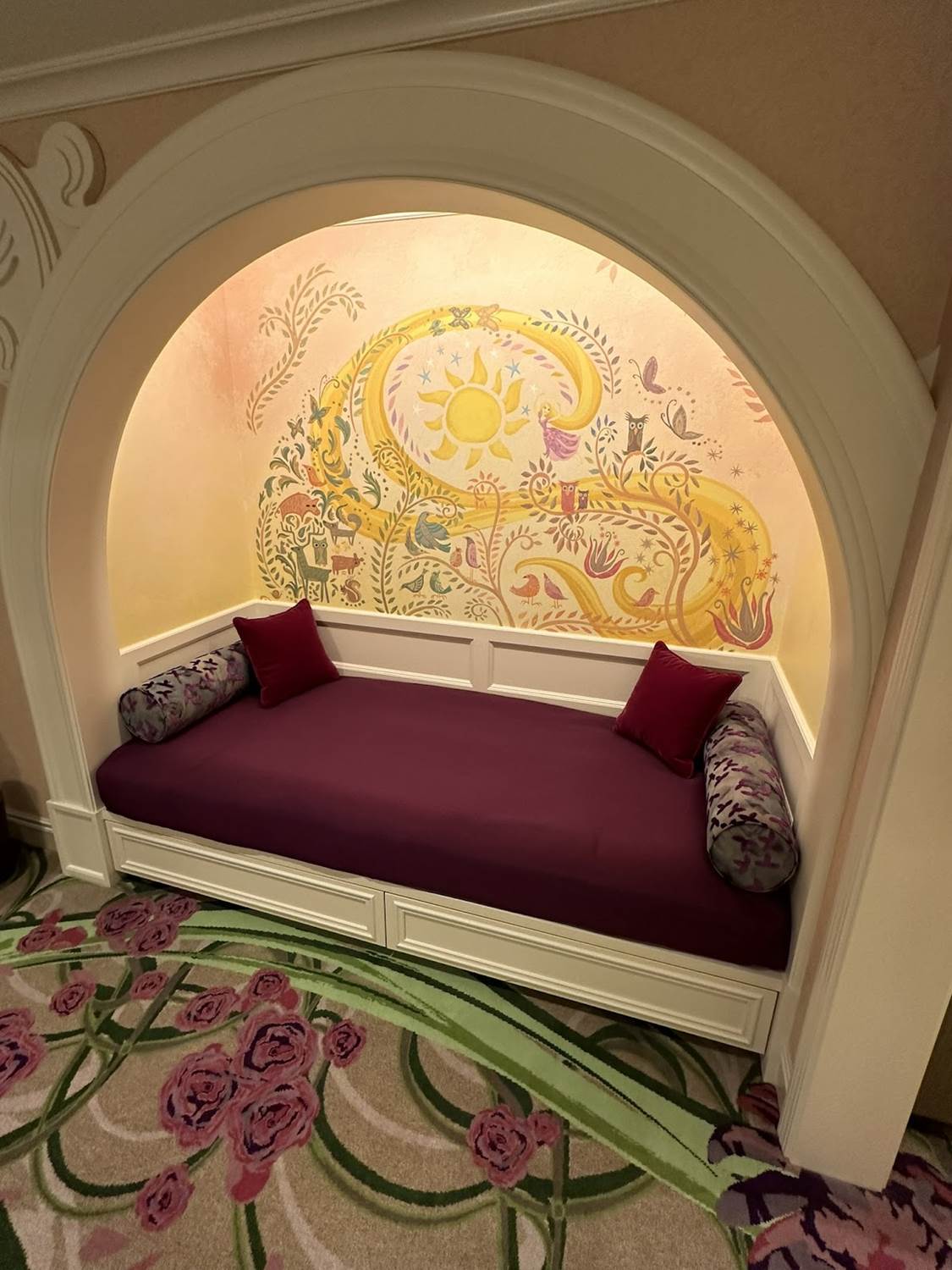 This grand and ornate lobby was a joy to relax in. Several seating areas with large windows allowed guests to soak in the views of the immersive new Fantasy Springs. If you are a fan of the Walt Disney World Resort TV Today channel, the area music in the lobby was essentially that.