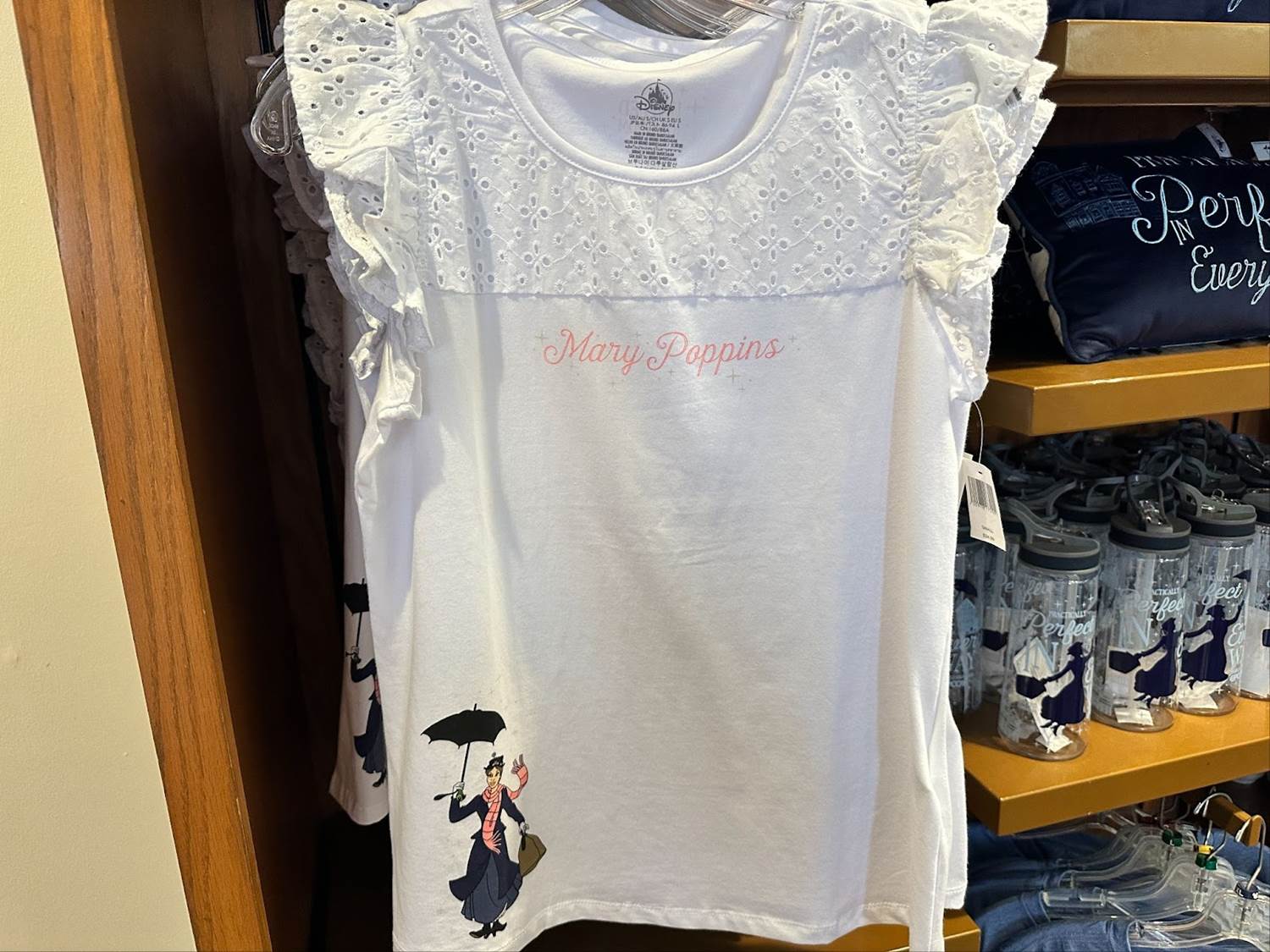 First up we have a women’s Mary Poppins tank top featuring a lacey design with ruffled sleeves. Retailing for $34.99, the simple top is perfect for a sunny Florida day.
