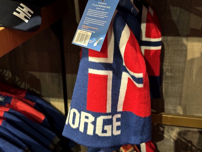 A line that features a more traditional look, especially when compared to merchandise found throughout the other World Showcase pavilions. This line also includes the Norway flag in the shape of a Mickey Mouse head, similar to the other pavilions as well.