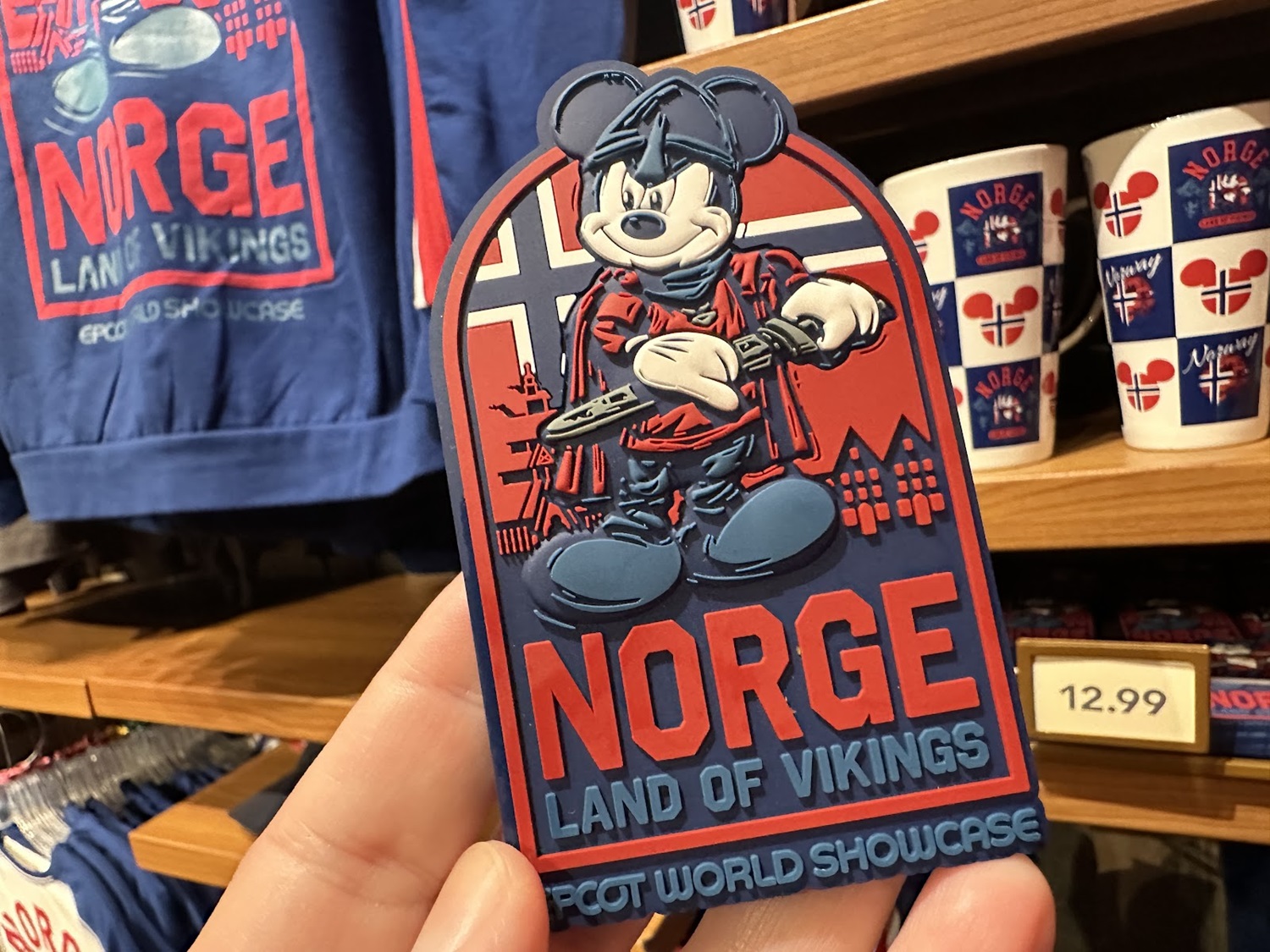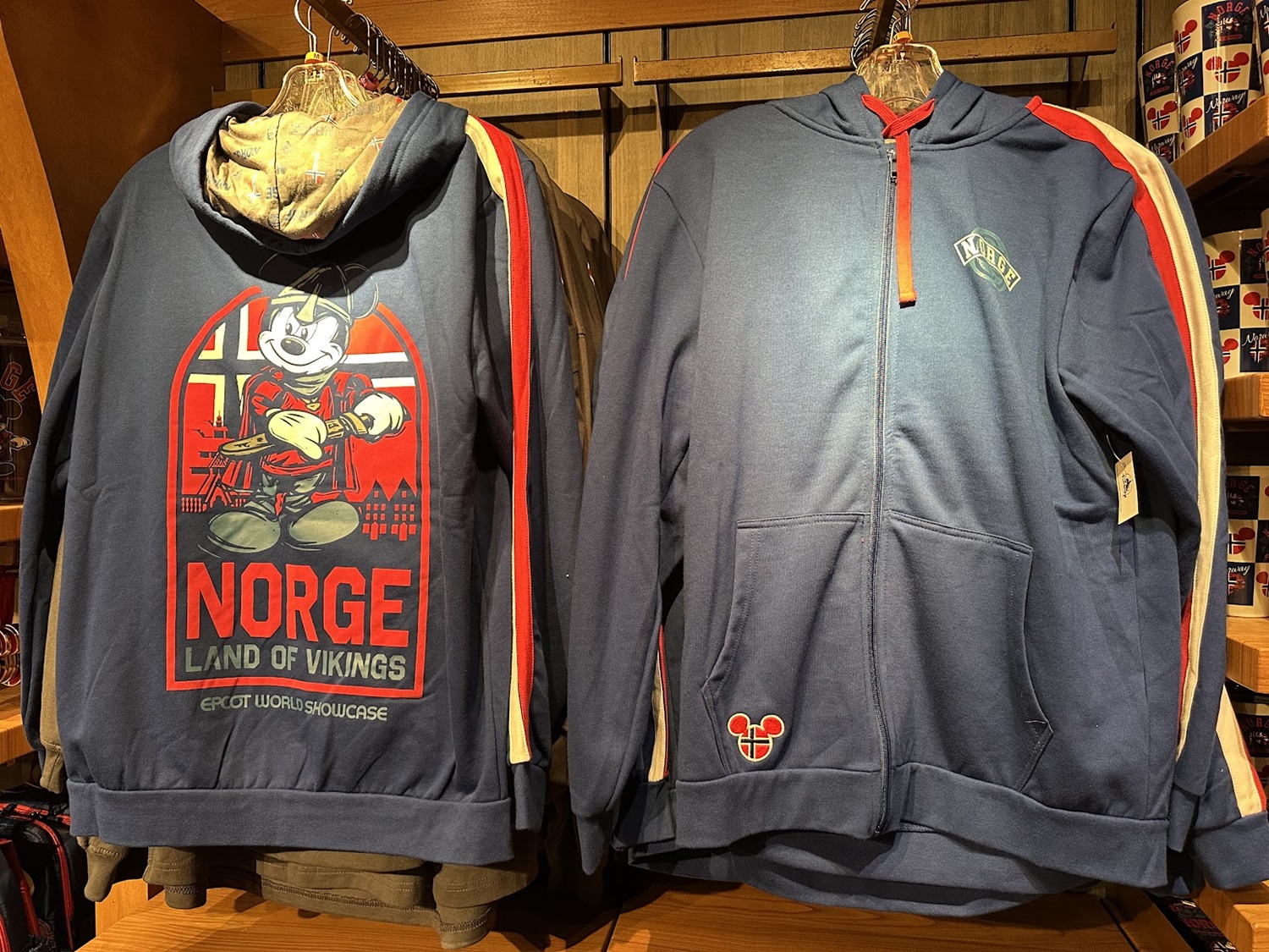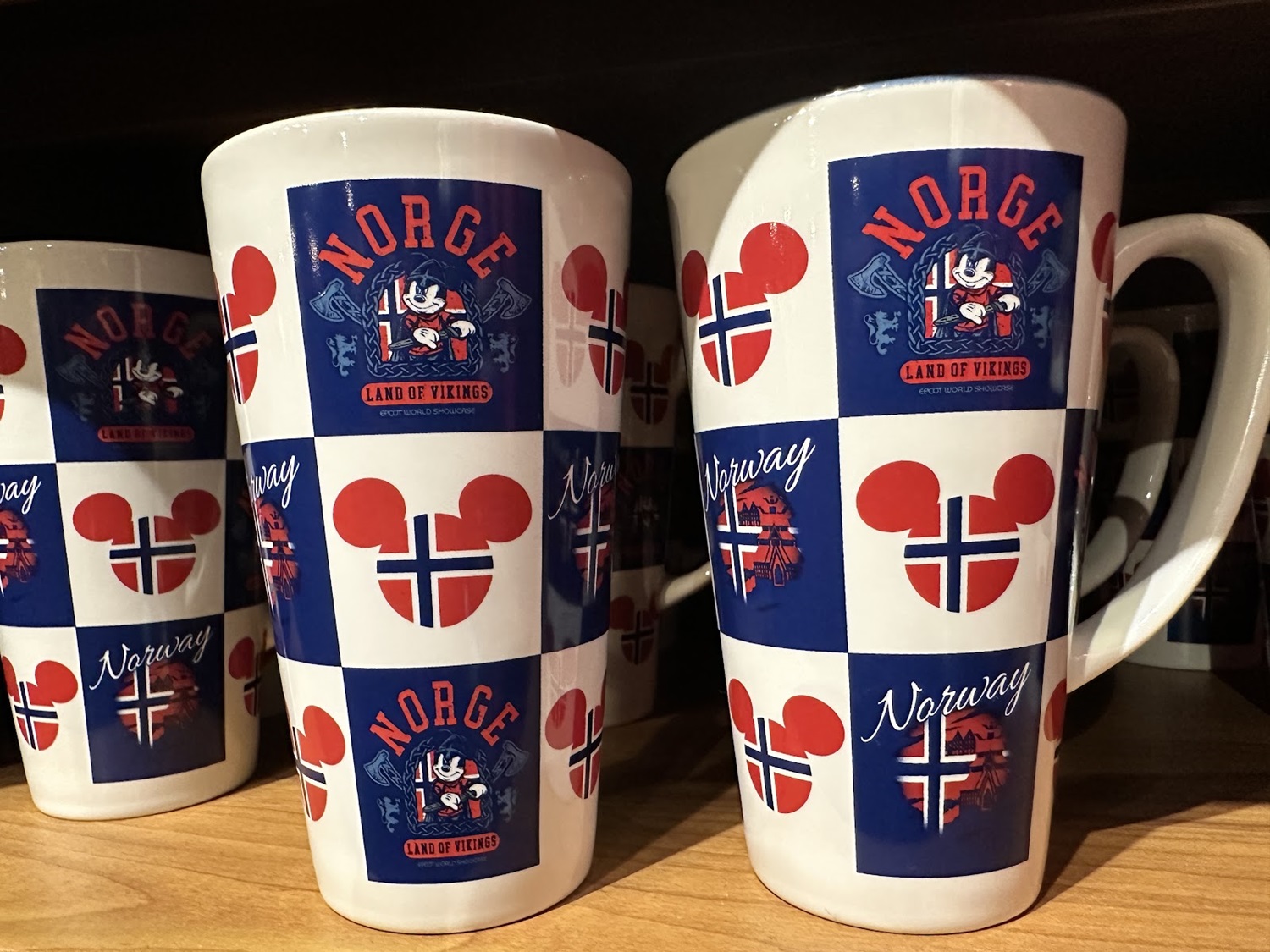 A line that features a more traditional look, especially when compared to merchandise found throughout the other World Showcase pavilions. This line also includes the Norway flag in the shape of a Mickey Mouse head, similar to the other pavilions as well.