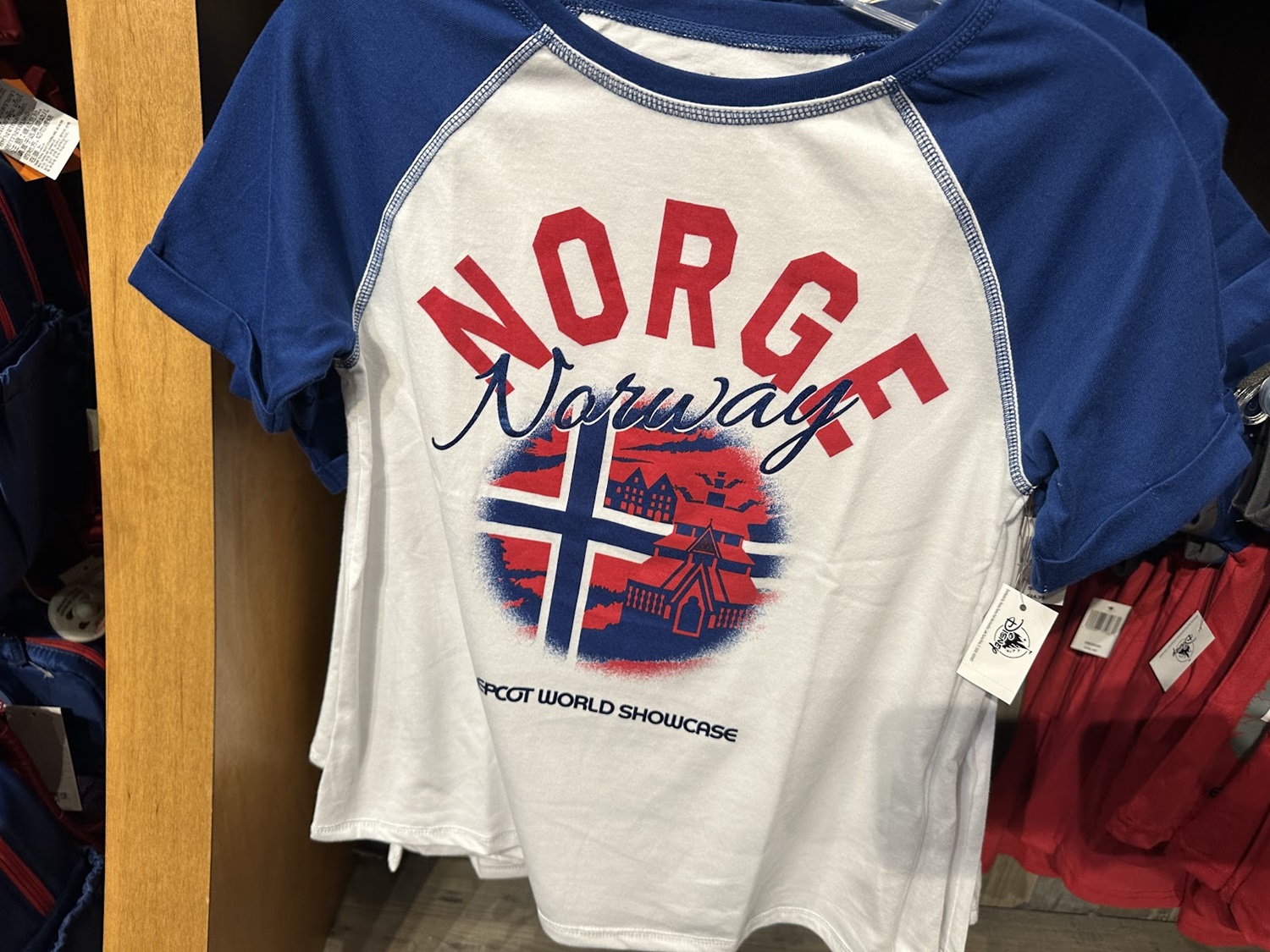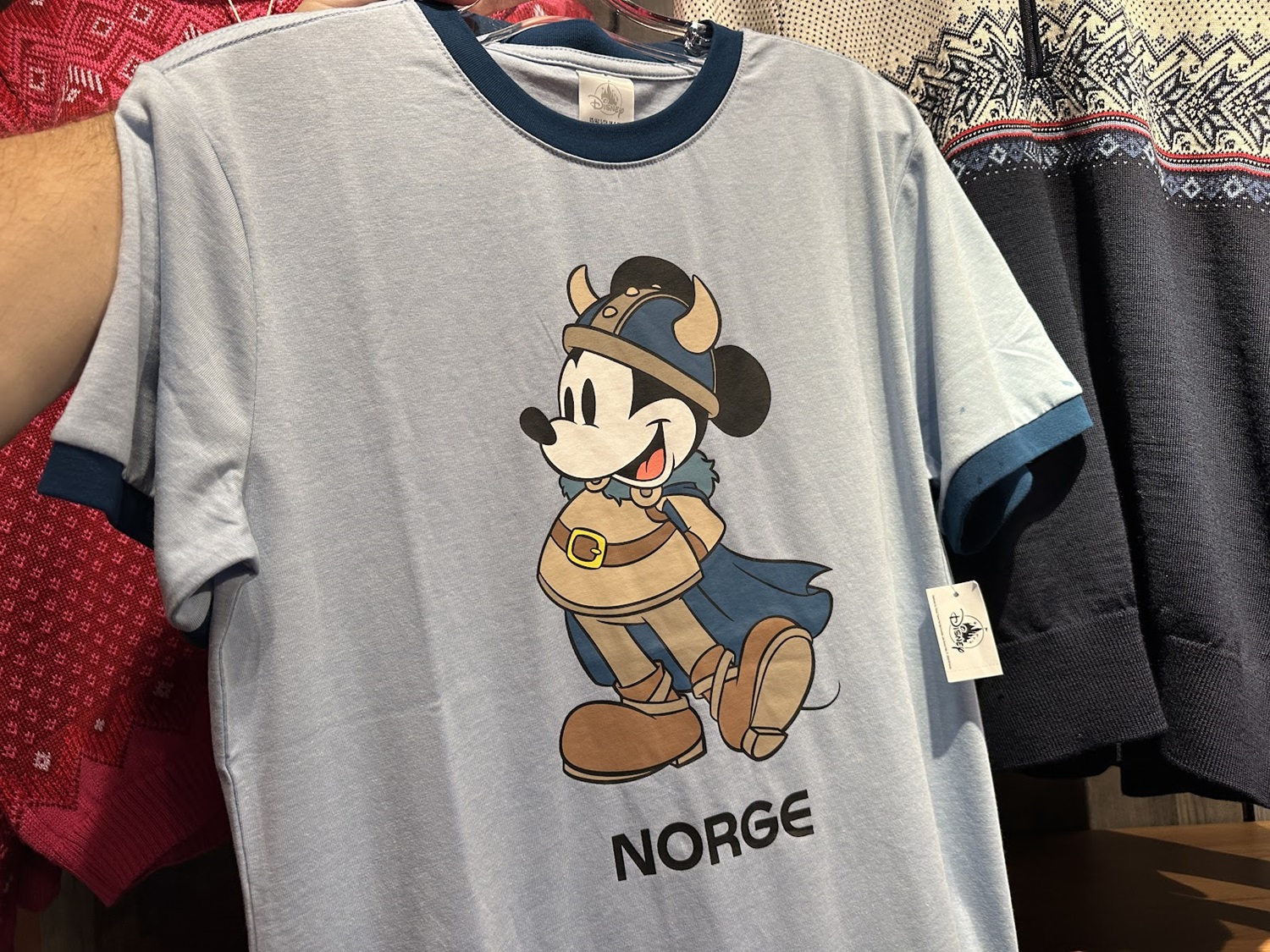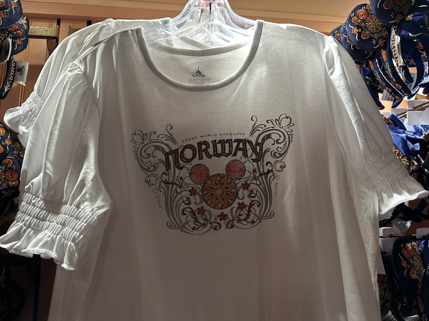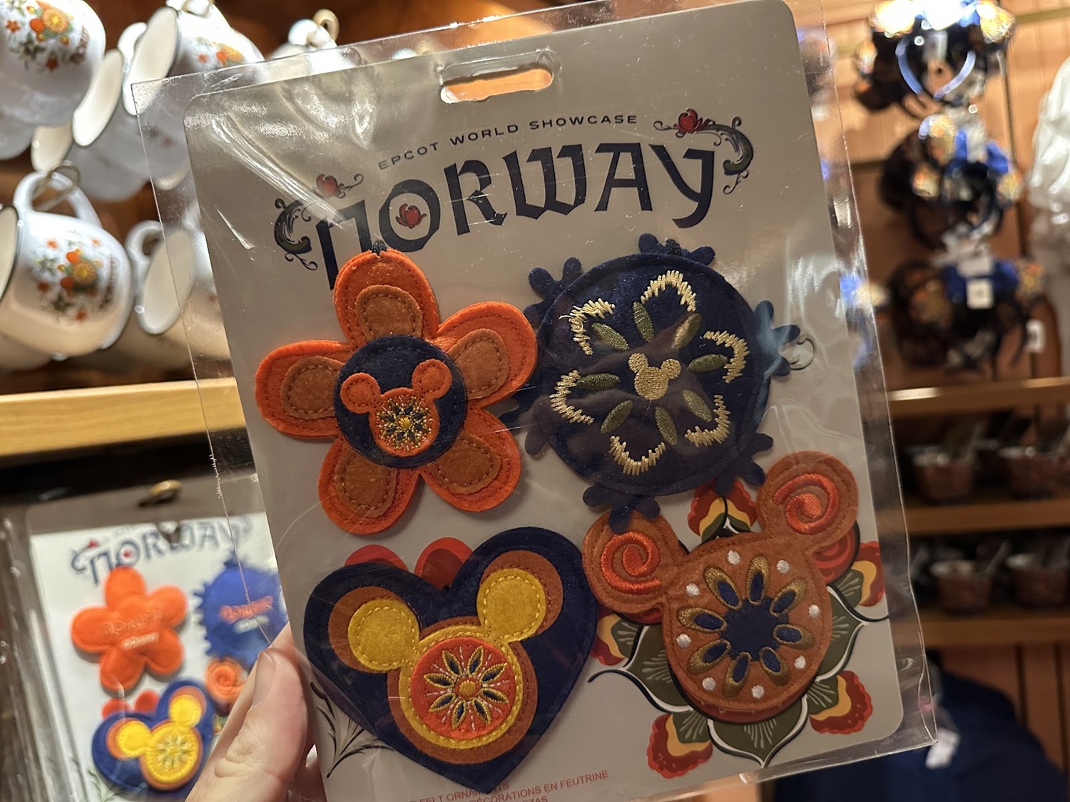 A line that features a more traditional look, especially when compared to merchandise found throughout the other World Showcase pavilions. This line also includes the Norway flag in the shape of a Mickey Mouse head, similar to the other pavilions as well.