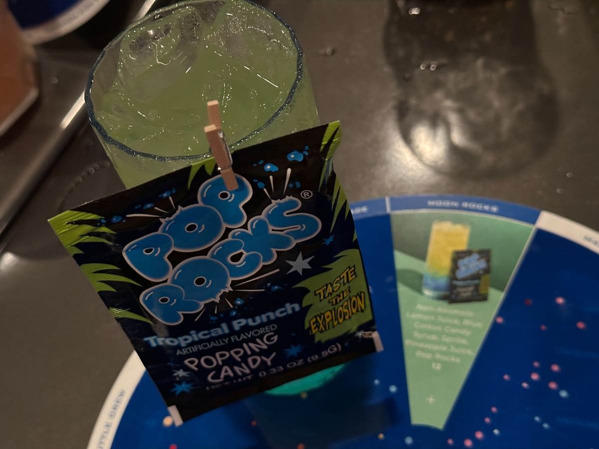 - Lemon juice, blue cotton candy syrup, sprite, pineapple juice, Pop Rocks