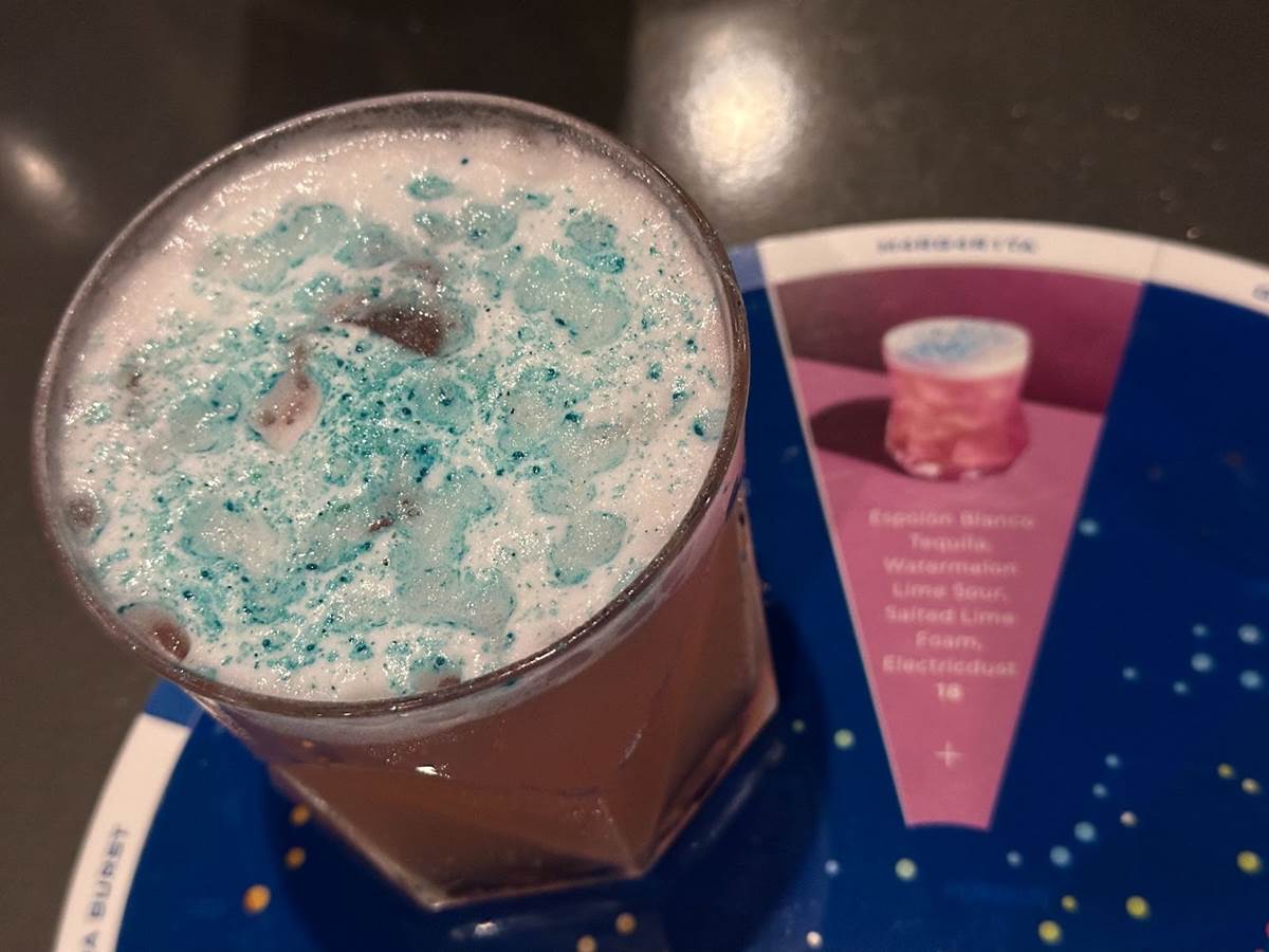 - Espolon blanco tequila, watermelon lime sour, salted lime foam, electricdust