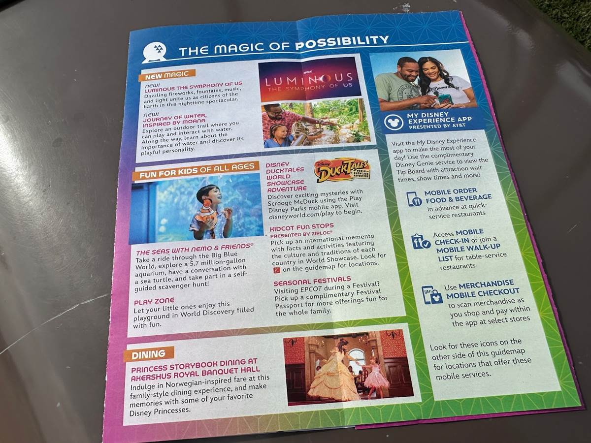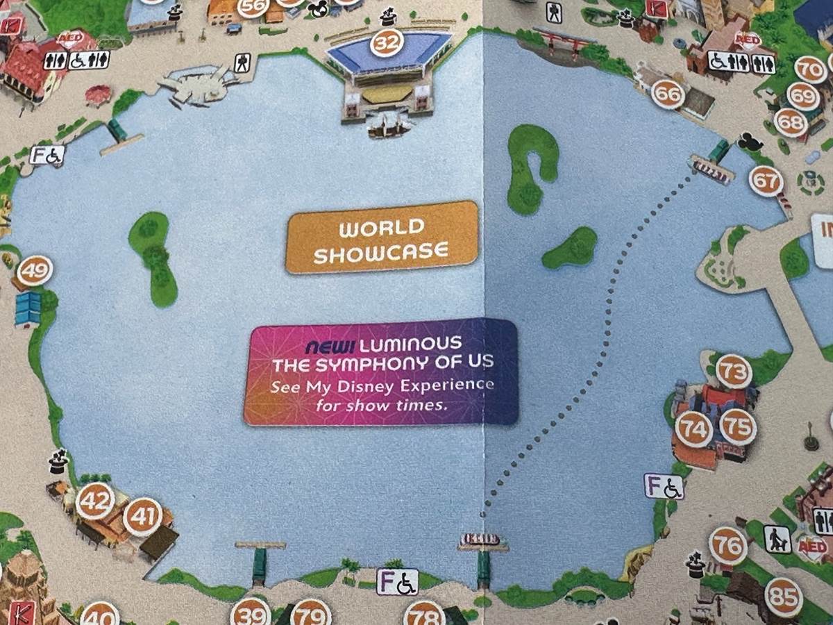 Luminous The Symphony of Us is also noted on the map itself, directing guests to the My Disney Experience app for showtimes.