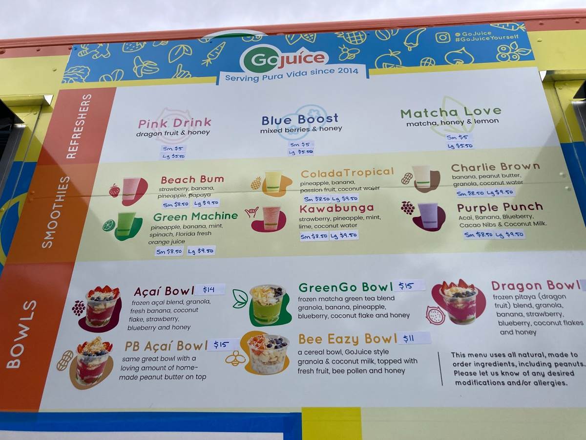 - The new GoJuice food truck offers a variety of Refreshers, Smoothies and Bowls.
