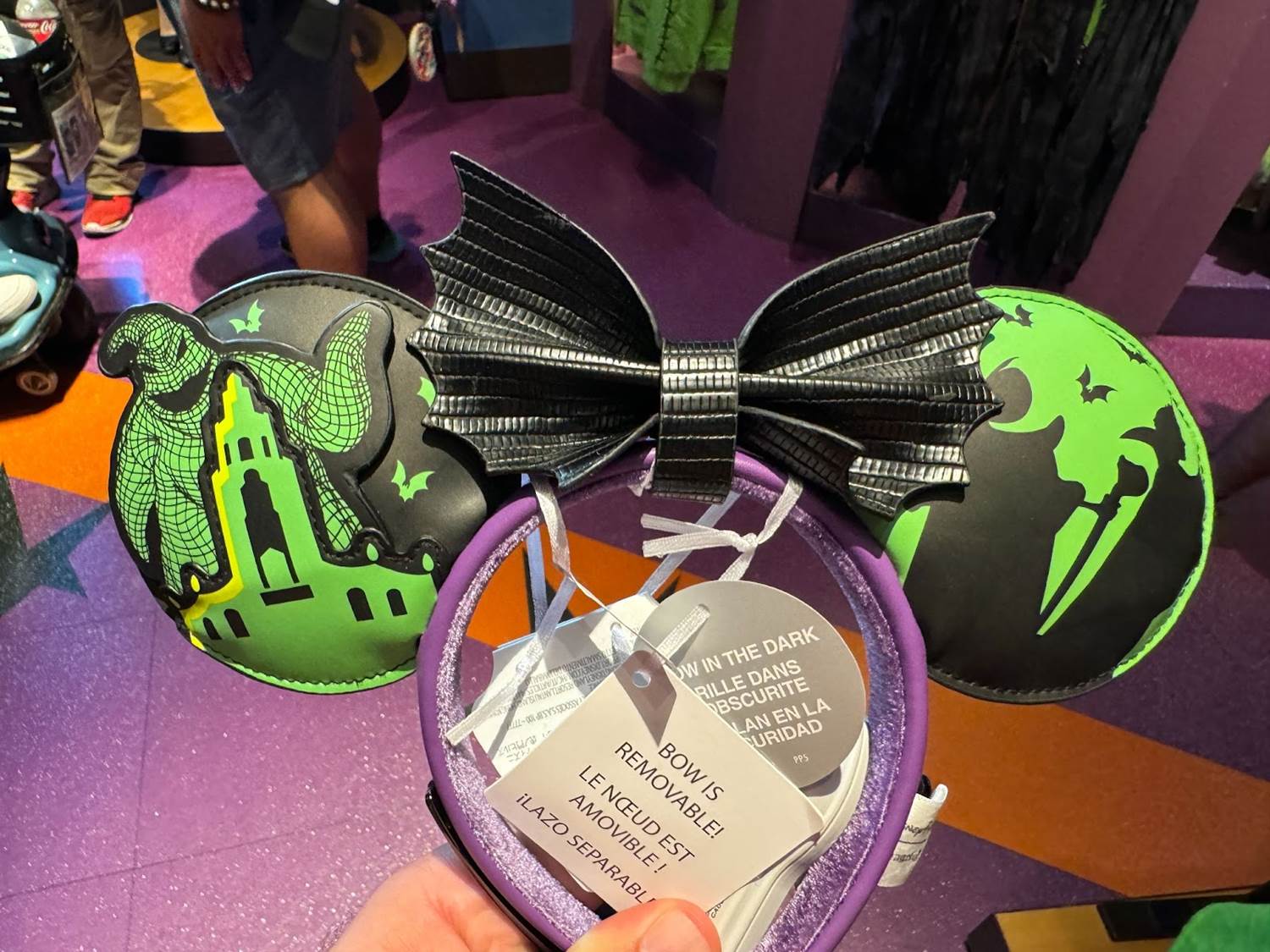 Your whole ensemble can be topped with a (removable) bow on this mouse ear headband. The front features Oogie Boogie looming over Carthay Circle.