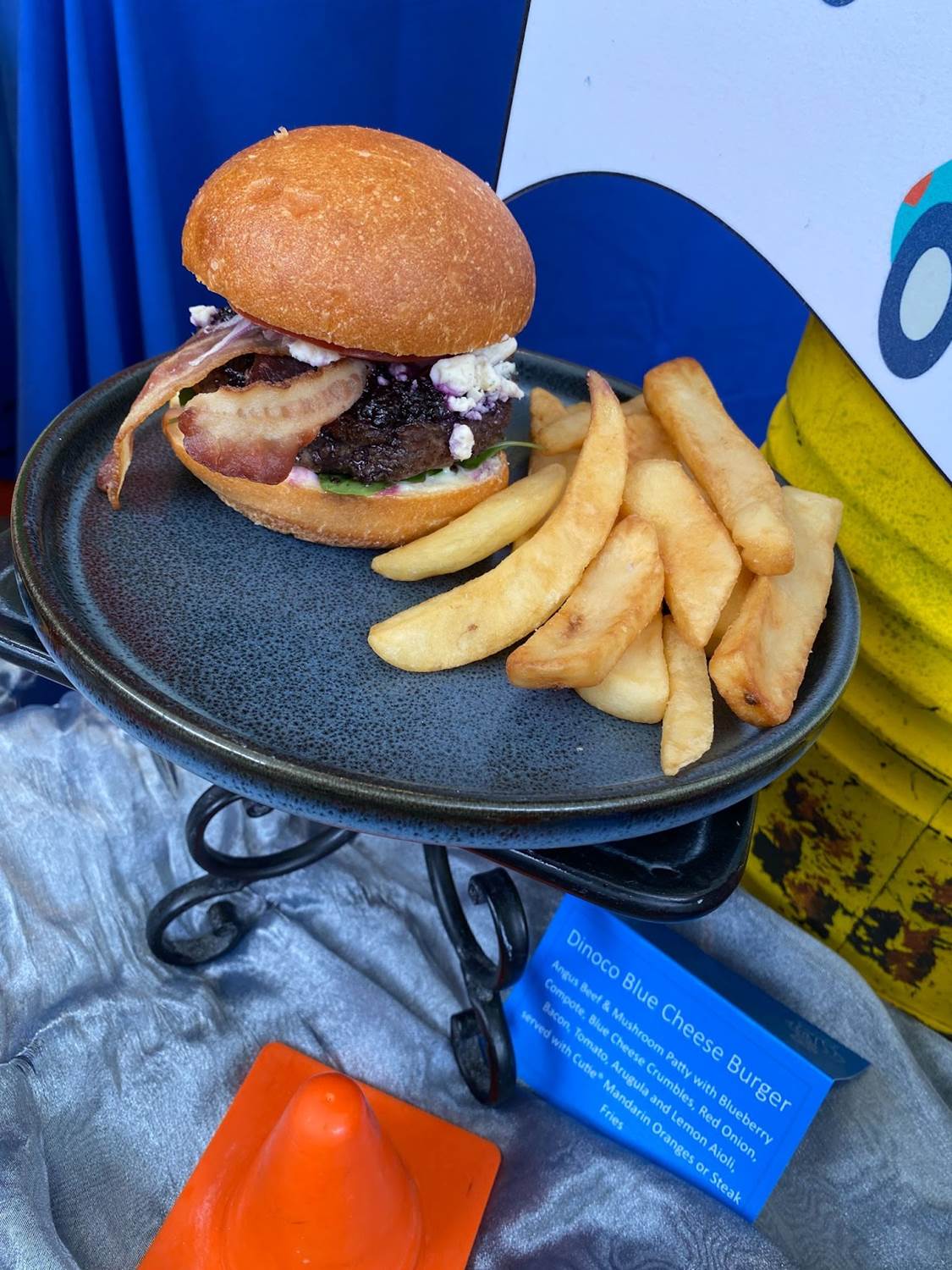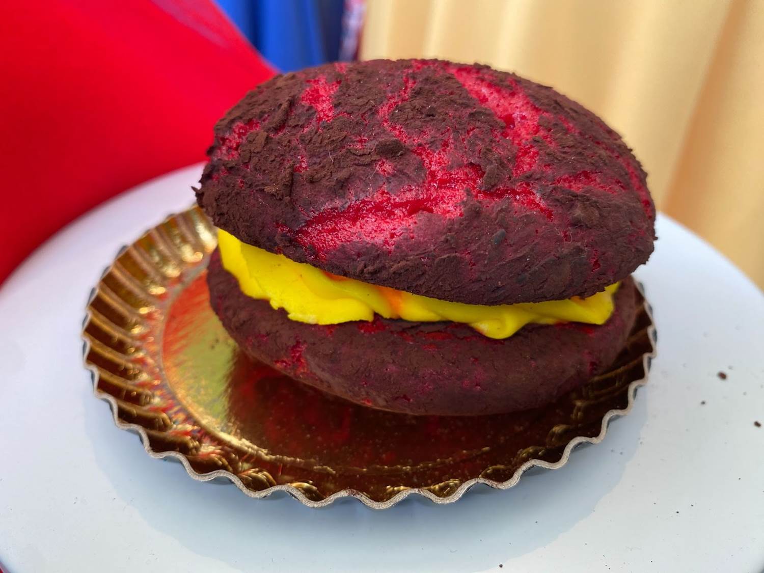 Flo’s V8 Cafe is always serving up Cars treats, but there are two event-exclusive items on the menu for Pixar Fest. The Dinoco Blue Cheeseburger features an angus beef & mushroom patty with blueberry compote, blue cheese crumbles, red onion, bacon, tomato, arugula, and lemon aioli.