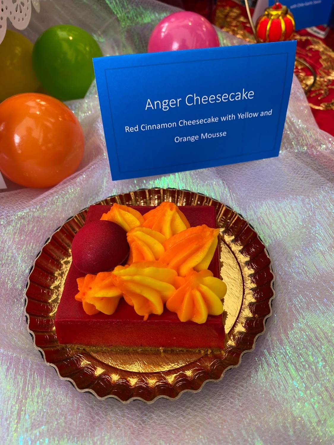 Ignite your tastebuds with the Anger Cheesecake (red cinnamon cheesecake with yellow and orange mousse).