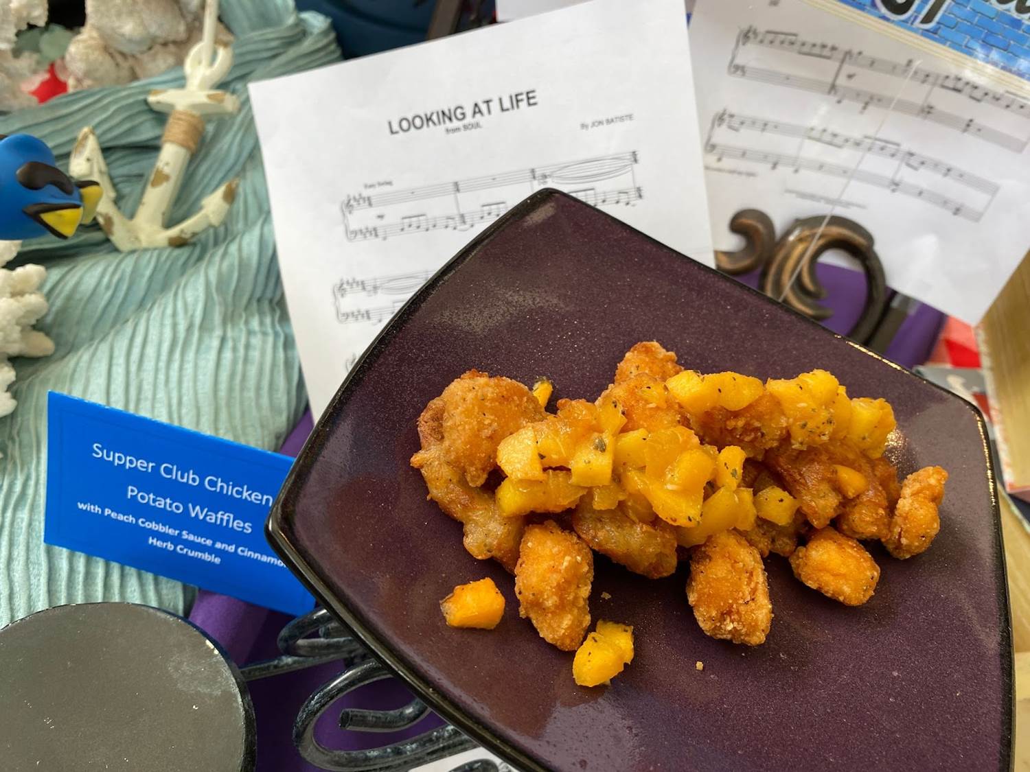 Another kiosk opening at Disney California Adventure on May 10th is The Spark, featuring a menu inspired by Soul. The signature dish is the Supper Club Chicken & Potato Waffles with peach cobbler sauce and cinnamon-herb crumble.