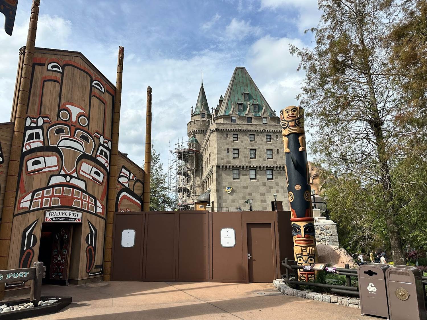Walls have gone up next to the Trading Post retail location blocking off the backside of the Canada Pavilion as the park refurbishes the Quebecois facade.
