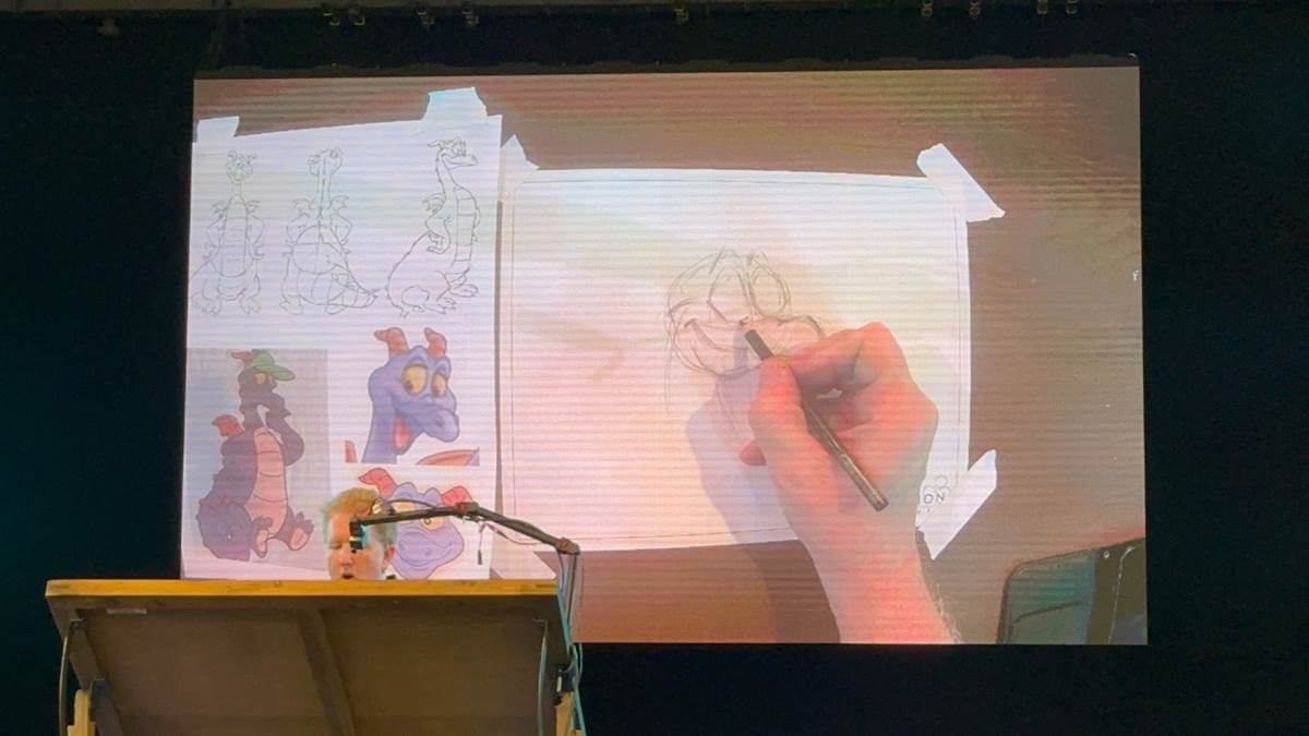 The experience takes place twice daily during the run of the festival, at 12:30 and 1:30 p.m. in the America Gardens Theater. During this session on the opening day of the 2024 festival, we got to learn how to draw Figment!
