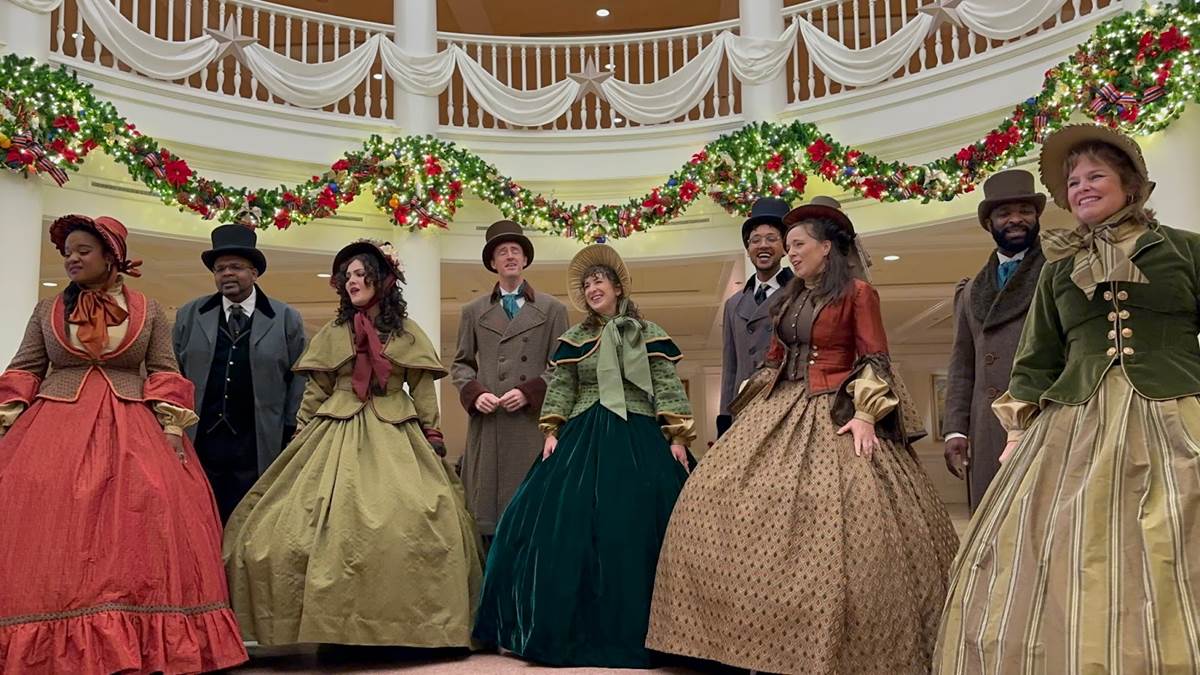The Voices of Liberty are out in their Dickens’ Carolers costumes once again this year, performing some holiday classics in their unique style.