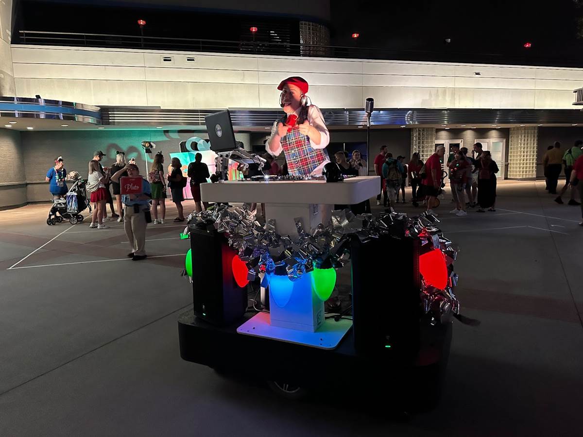 We begin in Animation Courtyard, where a roaming DJ can be found spinning the hottest holiday tunes.