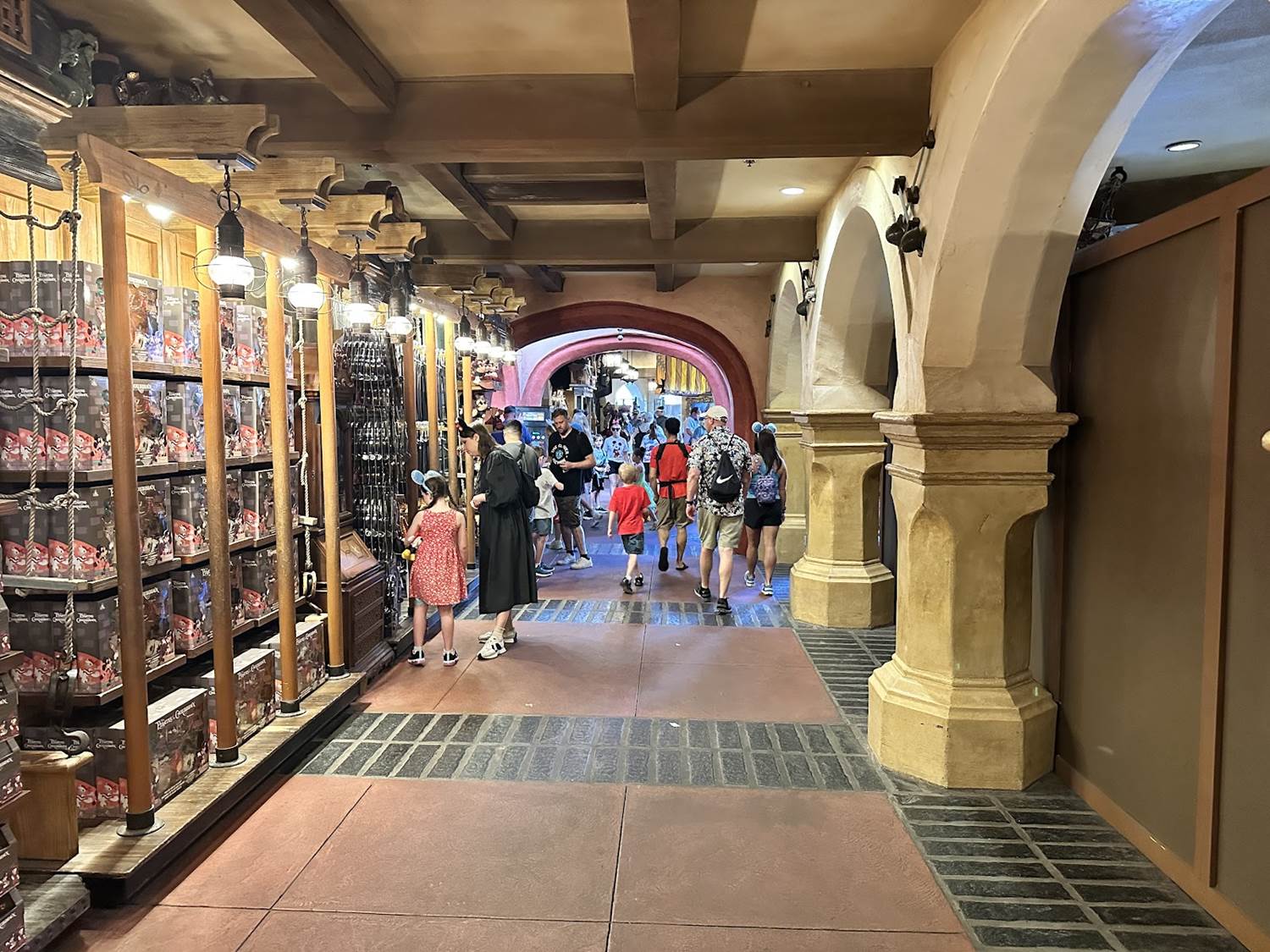 Now, the location has largely moved back to the exit of the attraction, offering merchandise where it once was before being moved as work on a Pirates of the Caribbean-themed lounge that has been announced is speculated to be going.